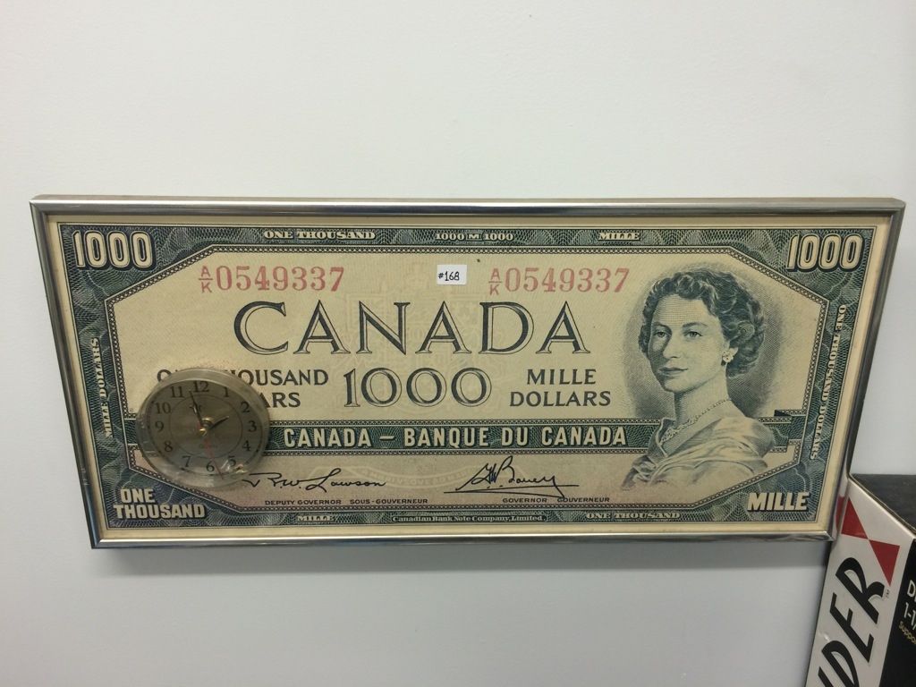Framed Oversized $1,000 With Clock (9.75" X 21")
