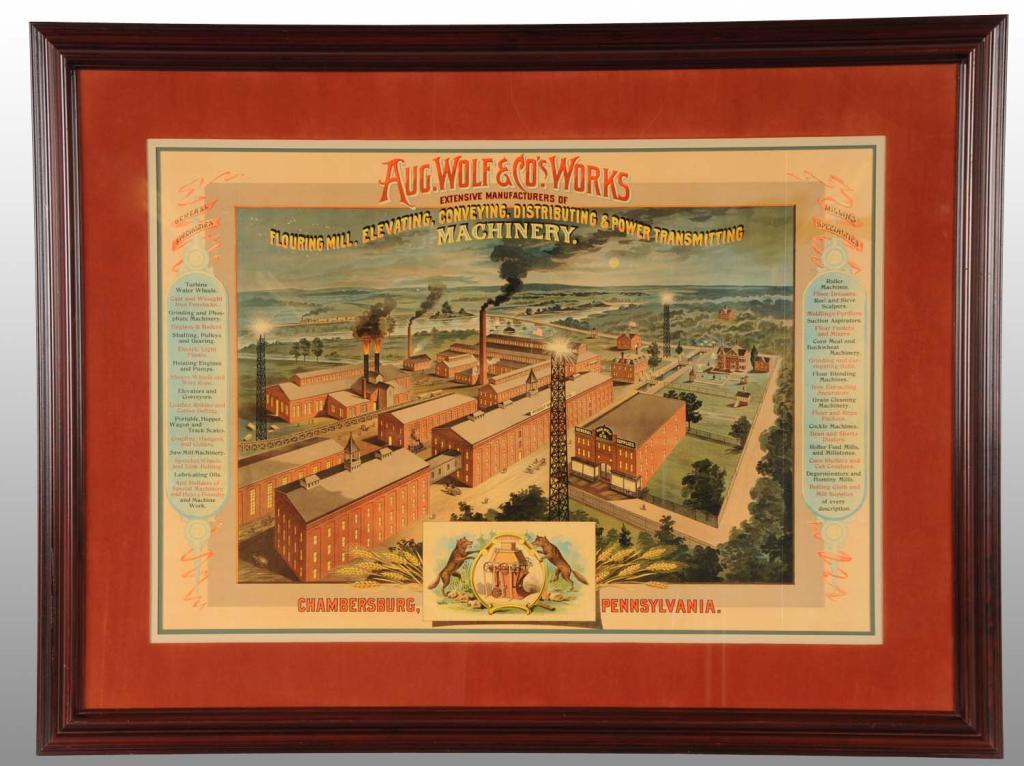 Description Circa 1880s to 1890s. Manufactured in Chambersburg, Pennsylvania. Expensively and beautifully framed and matted under glass. Vivid colorful and impressive factory scene. One large tear but no fading and presents beautifully. Condition (8.5 - 8.8+, Excellent). Size Visible image: 21" x 31".