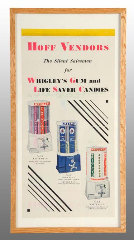 Description Depicts three different machines, two Wrigley and one Lifesavers, that the company manufactured. Some fold marks and faded writing. Neat piece to go with the machine lots. Condition (Good - Very Good). Size 17 - 1/4" x 8 - 3/4".