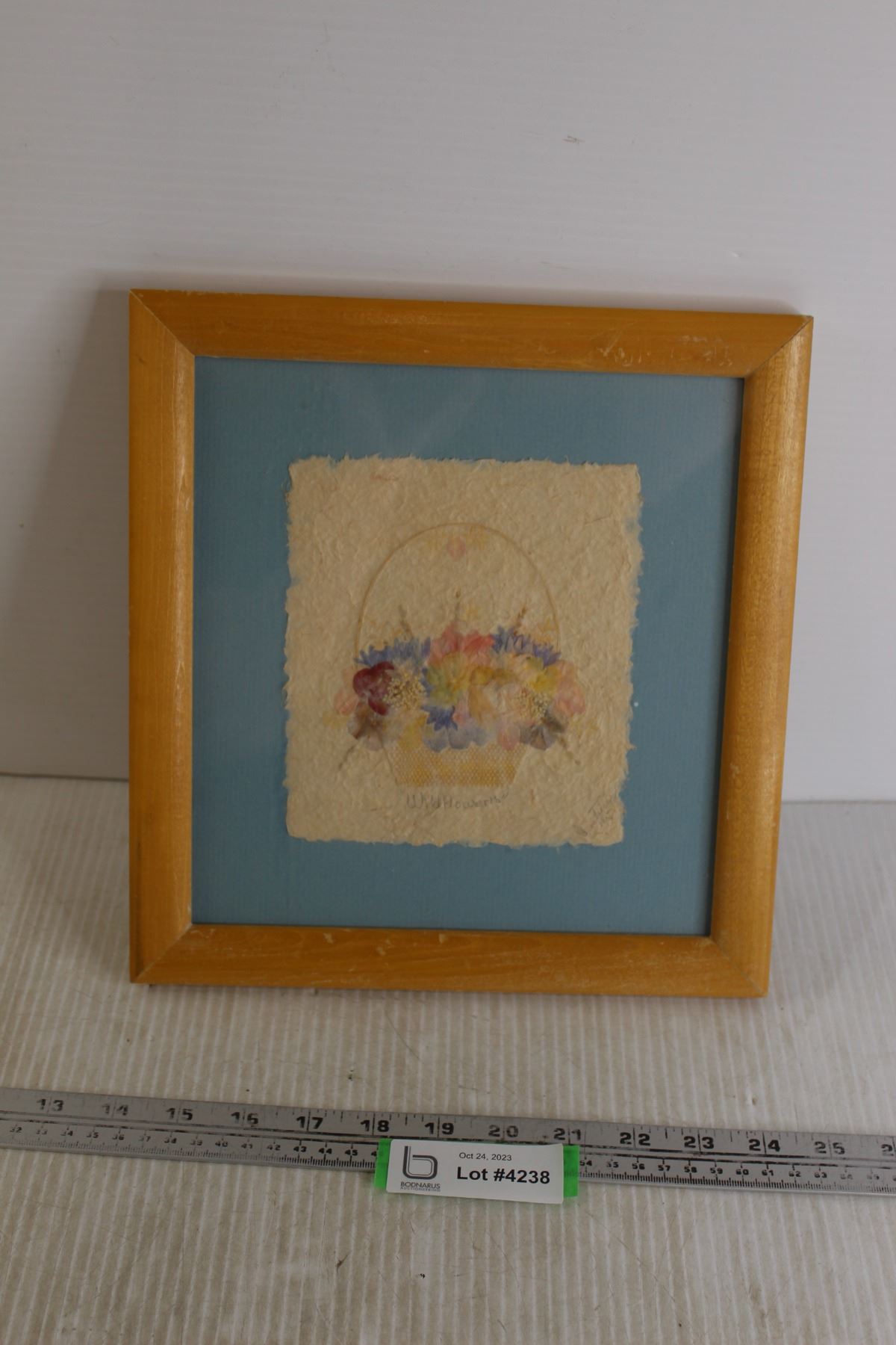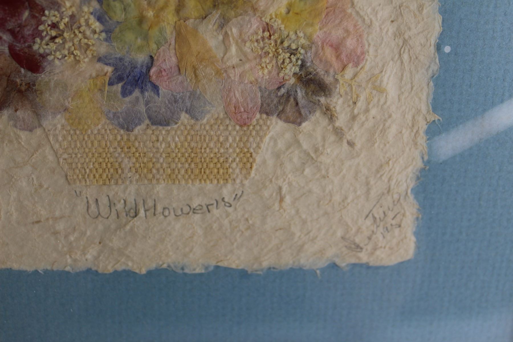 Framed Paper Mache Wildflowers by Unknown - 10" x 11", Frame has Scratches