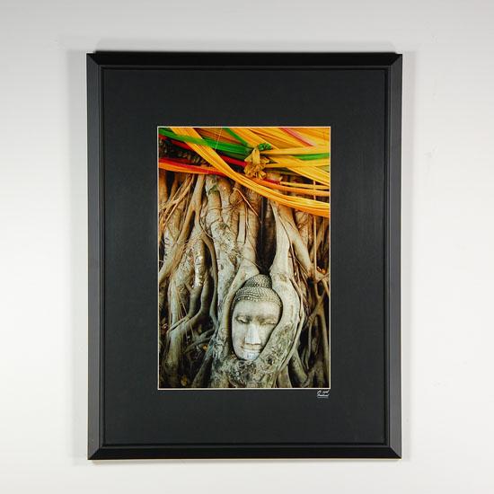 22.5" x 17.5" by popular Thai photographer M. Wuksub. Limited edition, buddha head overgrown by silk wrapped banyon tree, Mahathad Temple, Ayuthaya, Thailand