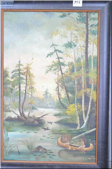 Framed Picture " Antique Style scene of Natives in Canoe"