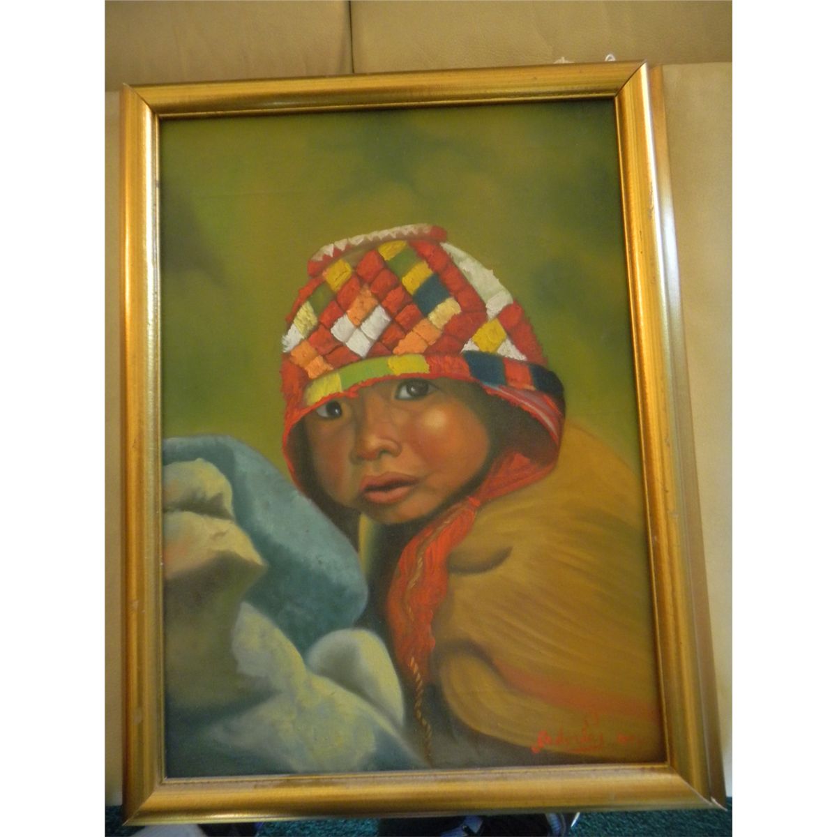 Framed oil on canvas Picture of Peruvian Child by Isadoria 2004- Picture is 11x16 without frame. Shipping $20.00