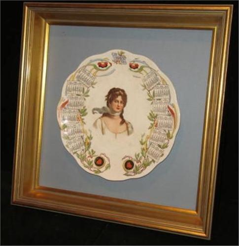 Framed Portrait Calendar Plate, 1910, 8.25" dia.