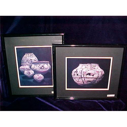 </font></strong>Framed Pottery. These prints are really flattering - the pottery has great lines and the coloring has a midnight blue cast to it. Nice compliment to your home or office decor. Pair is matted and framed in black, measuring approx. 15.5" x 13.75" and in very good condition. </font>