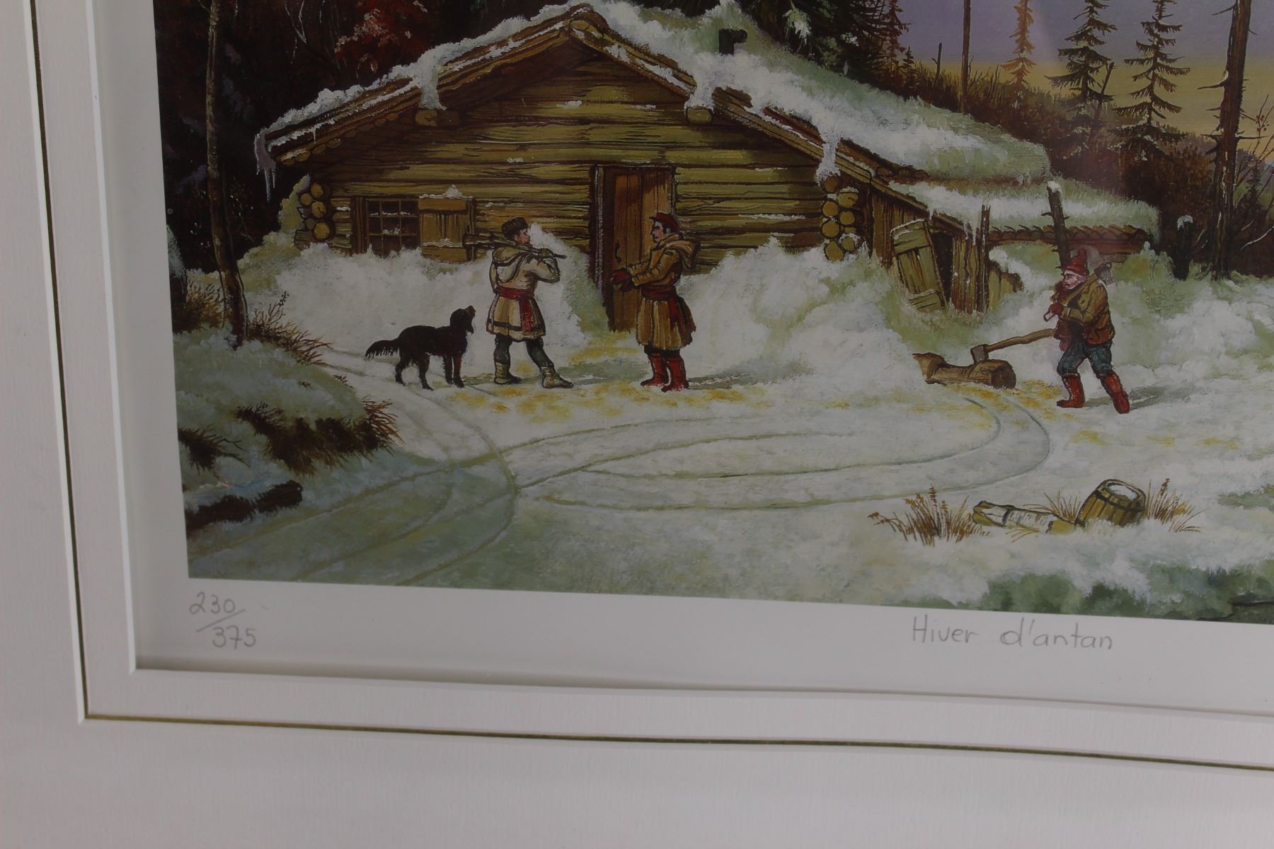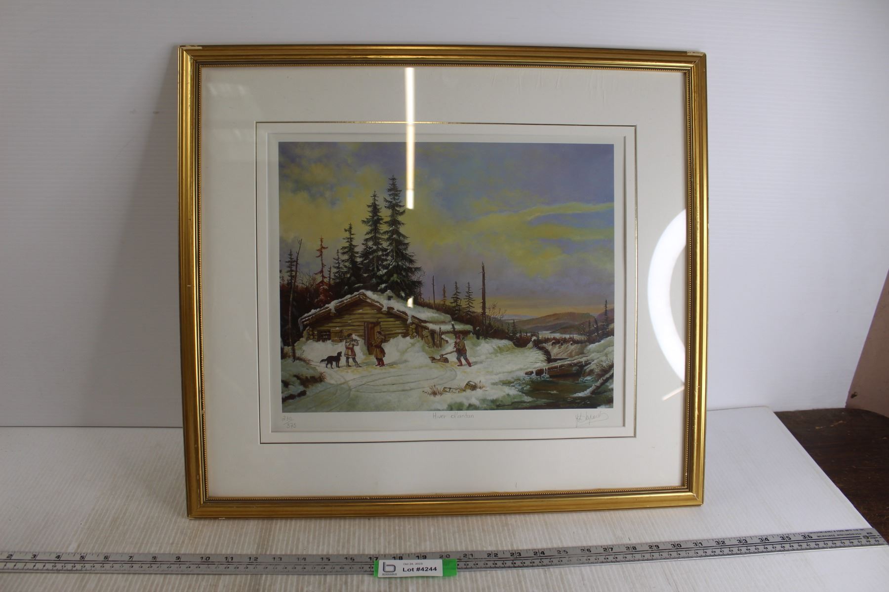 Framed Print 230/375 "Hiver d'antan" by J.L. Dupont - 21" x 23", Frame has Chips
