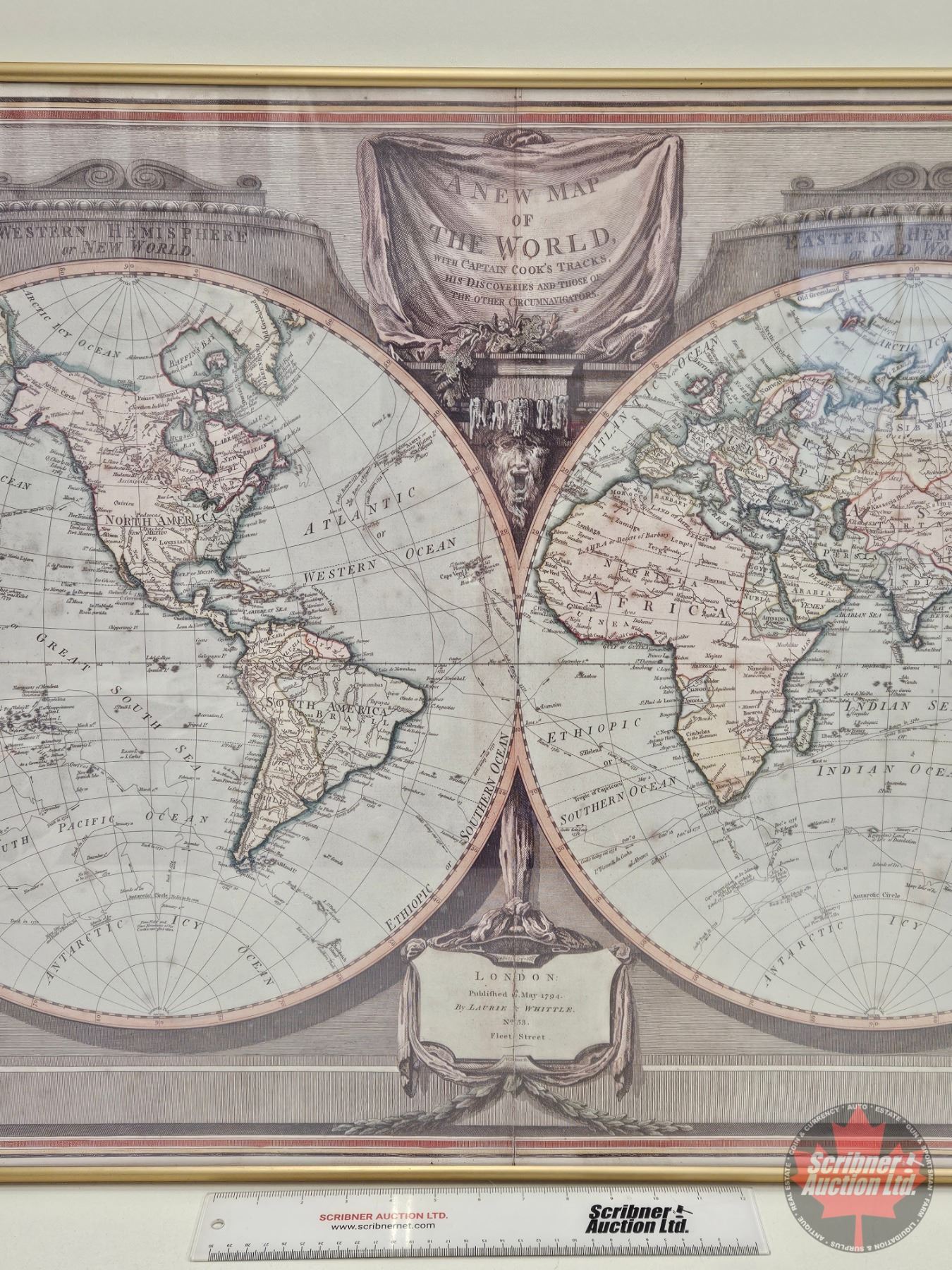 Framed Print : "A New Map of the World with Captain Cook's Tracks, His Discoveries and Those Of The Other Circumnavigators" (Published 1794)
