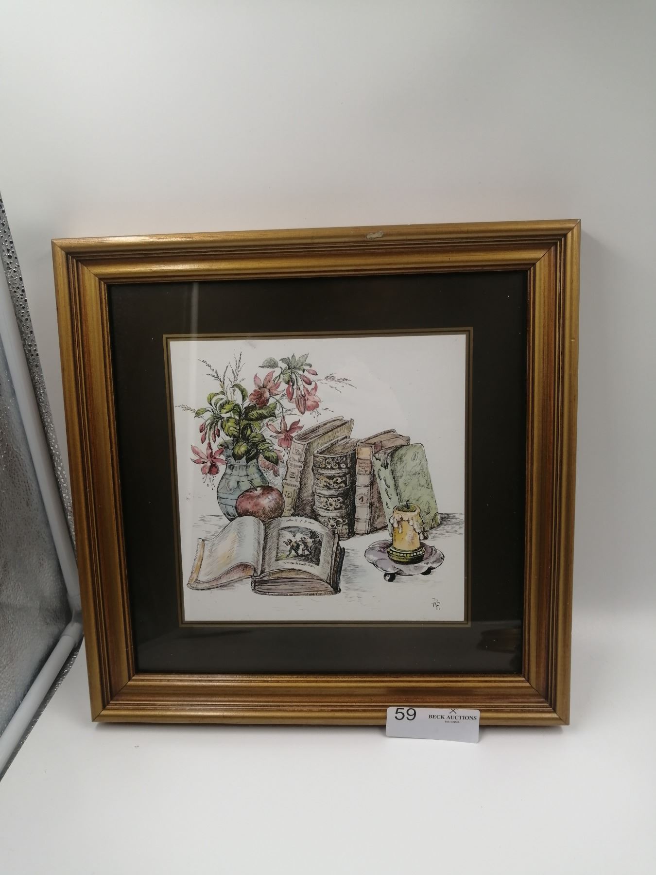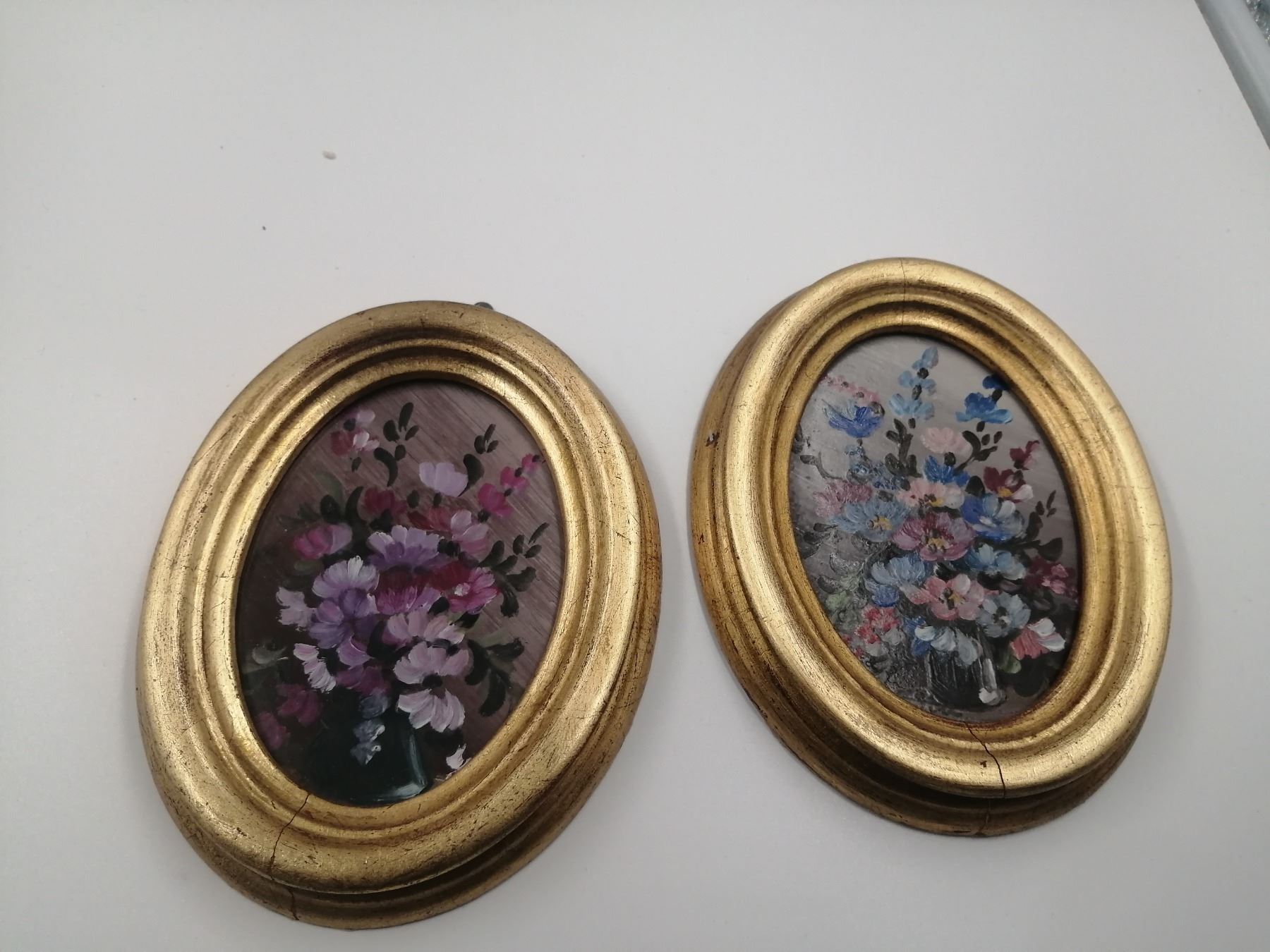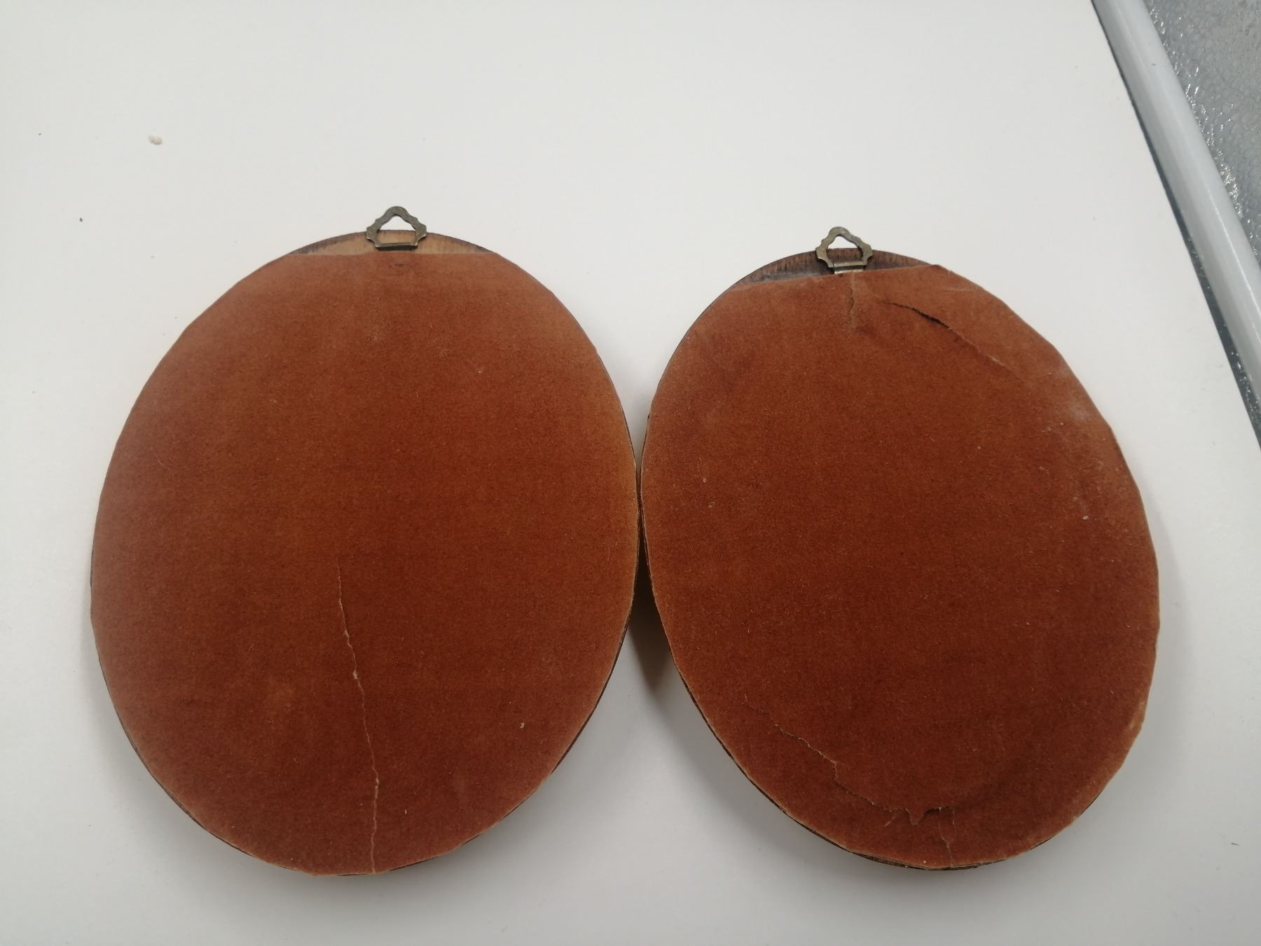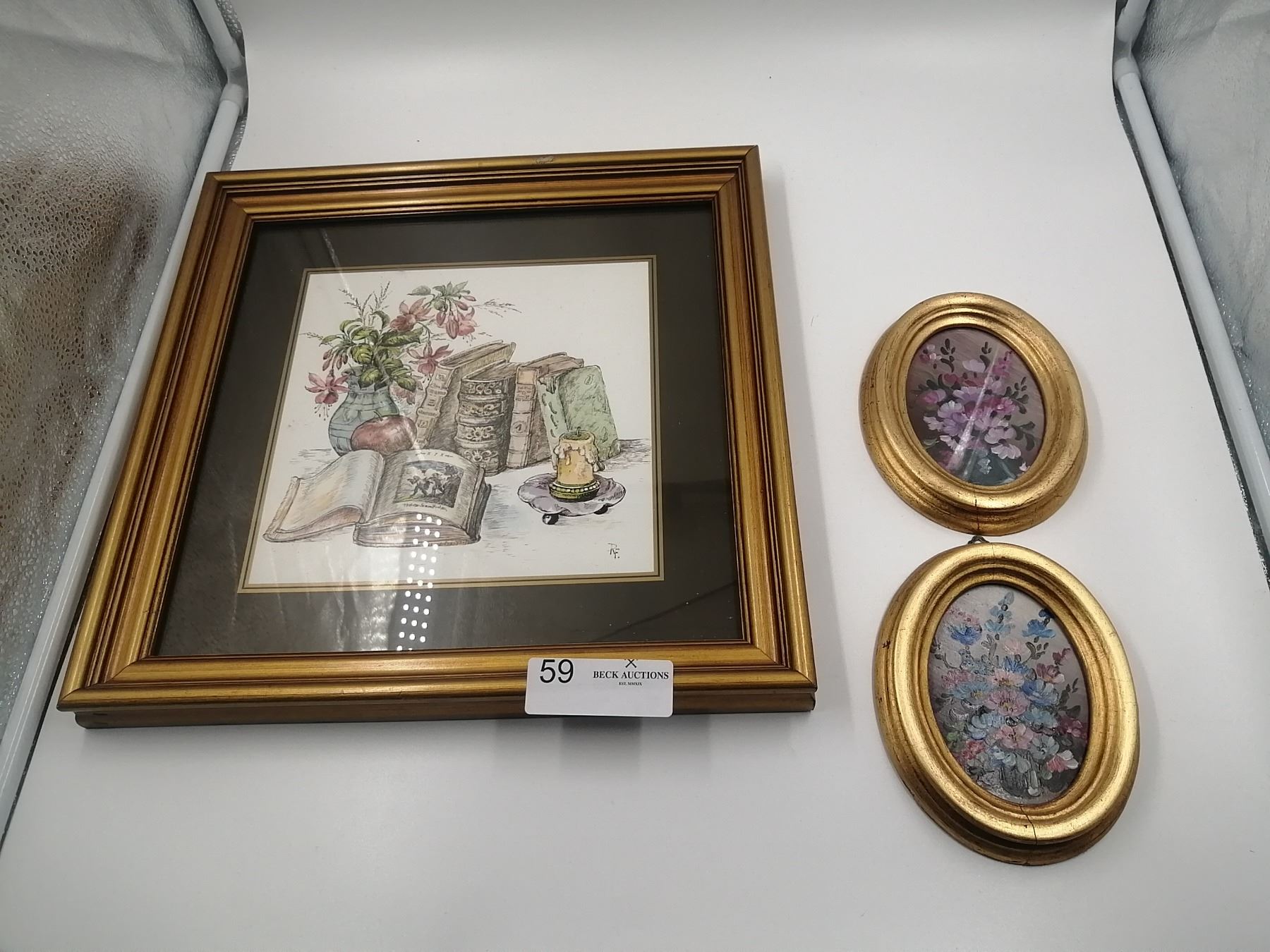 Framed Print By Initials R. F. 14" x 14" Two Small Oval Paintings One is Missing Glass Face