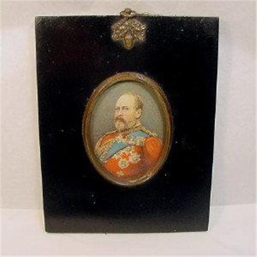 A genuine Edwardian print in more ways than one! Lovely period frame to this oval print of Edward VII of England. The frame is ebonized, with brass or bronze detail of acorn and oak leaves to the top.