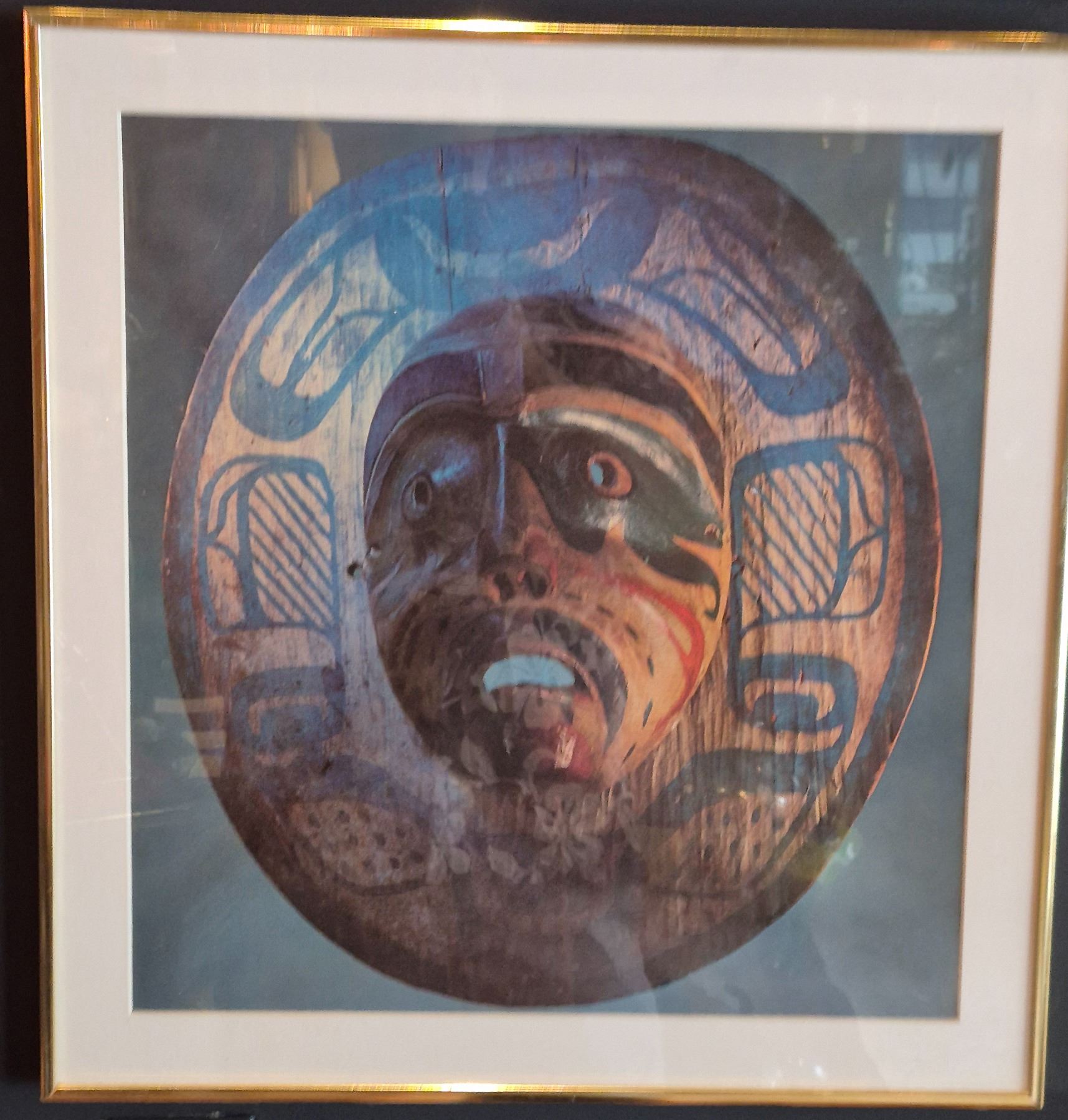Striking print of an original carved mask from BC’s Museum of Anthropology. Powerful Indigenous design. Framed and ready to hang.