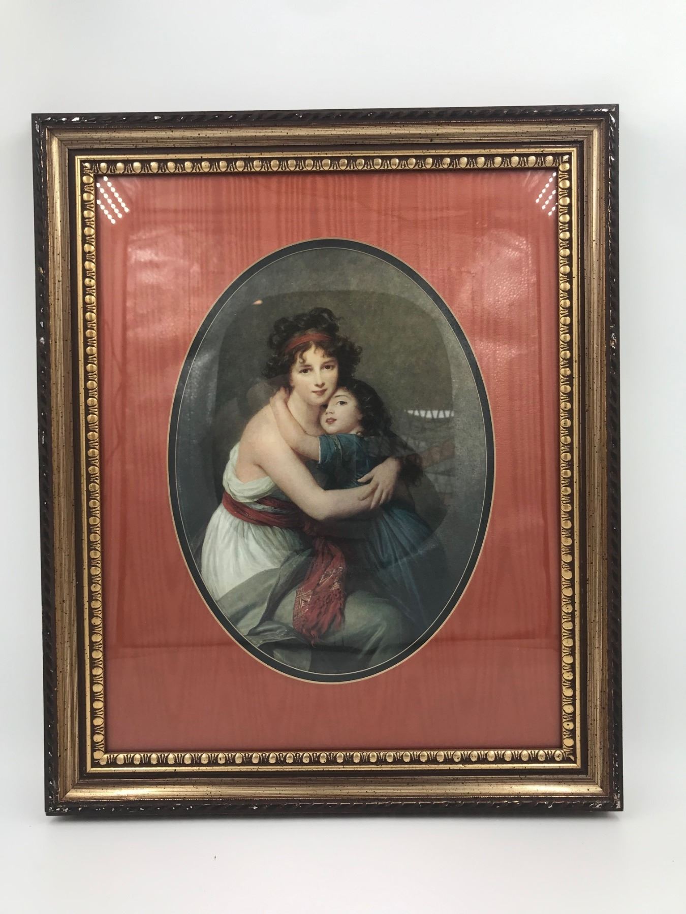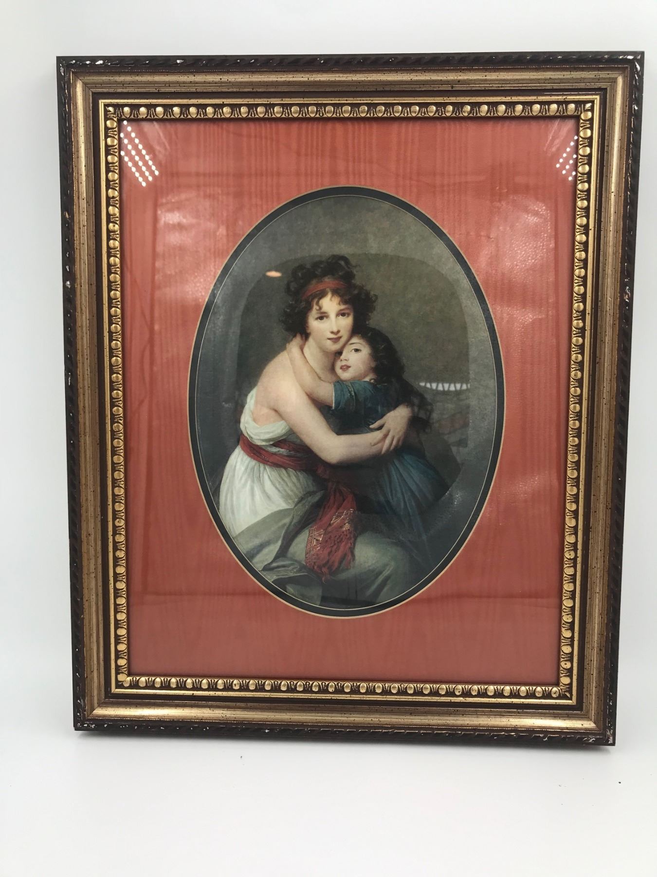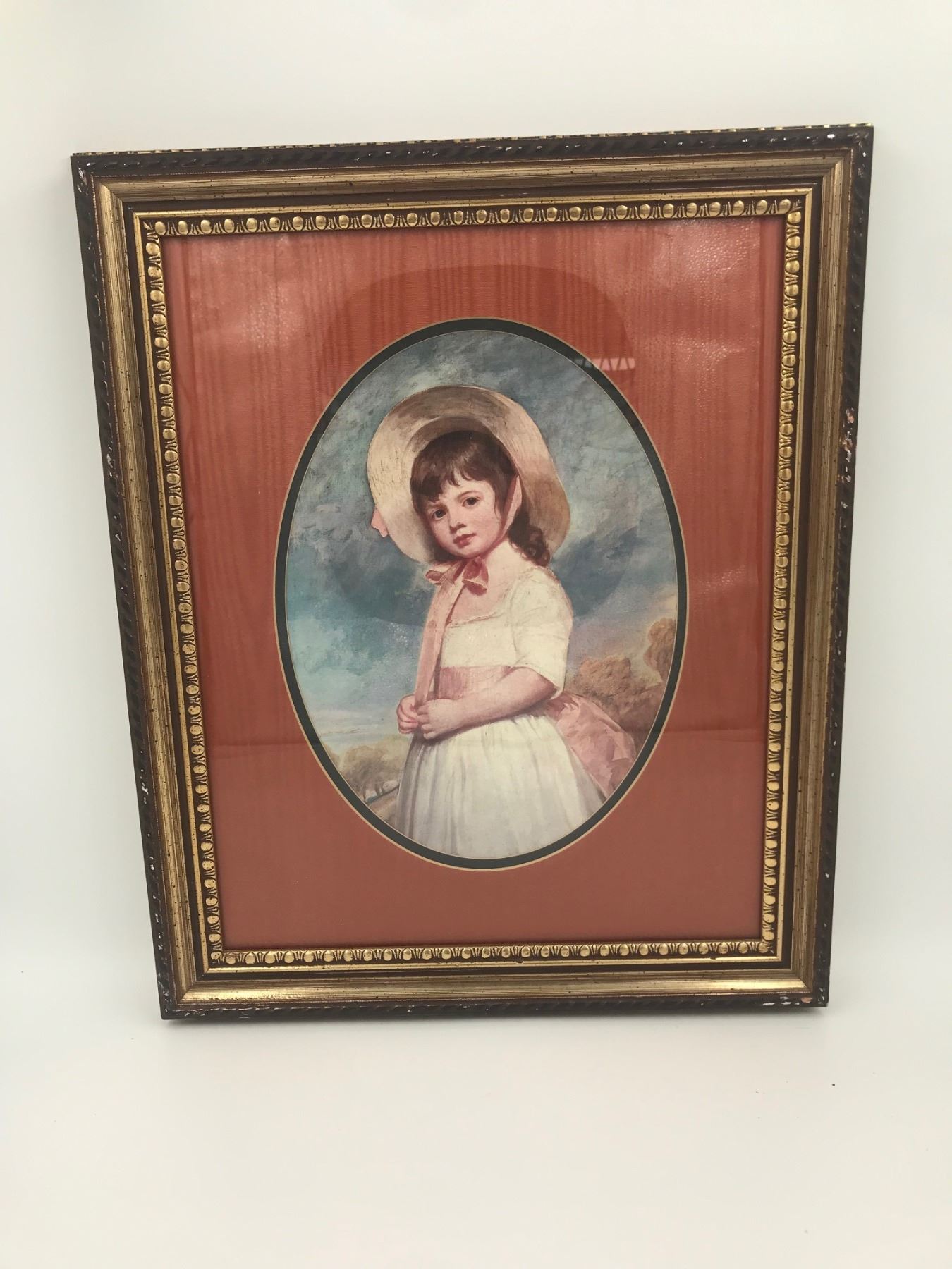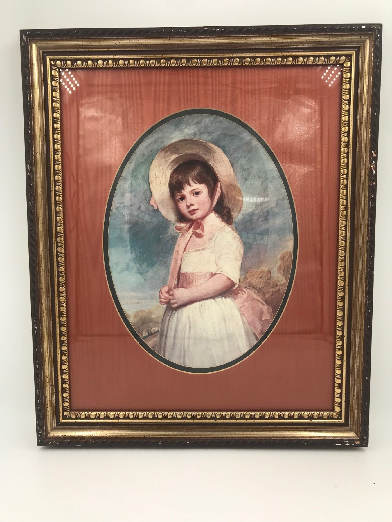 2 Framed Prints by George Romney on coral moire silk taffeta matt.14" x 17". Beautifully framed and matted at Birks