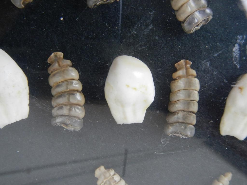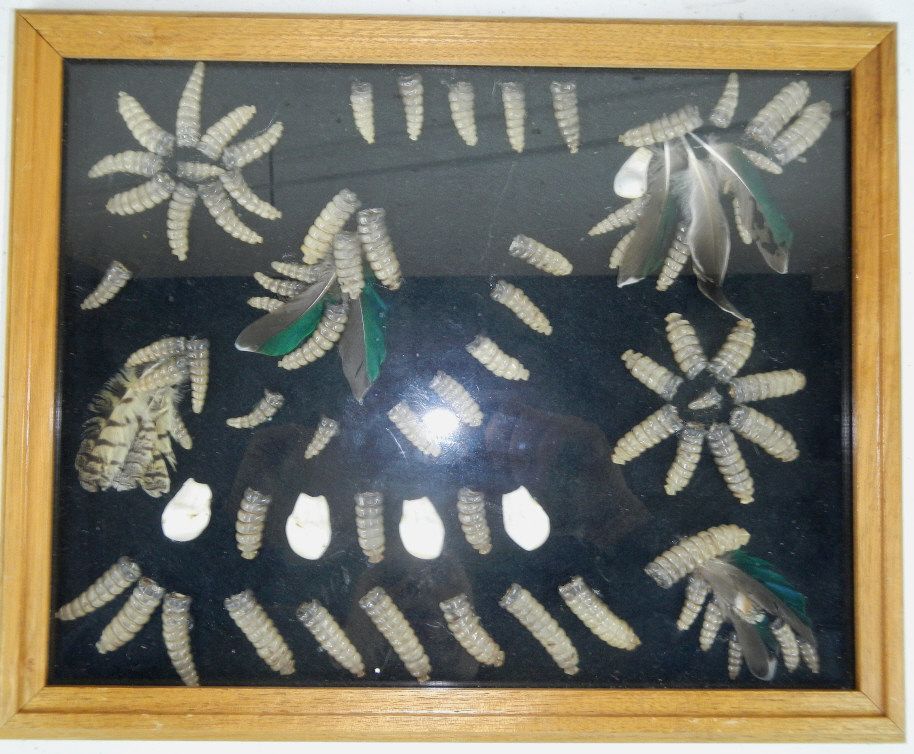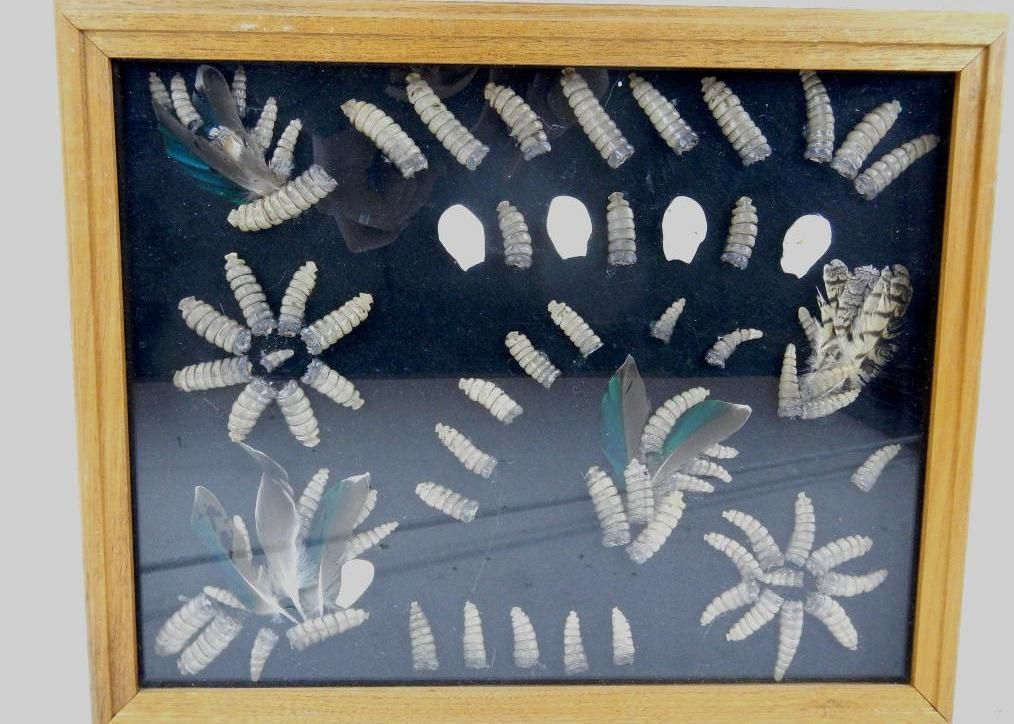 Framed Rattle's and Elk Ivory Teeth - This is a great western piece with 71 Rattle Snake Rattles and 5 Elk Ivory Teeth. Very well done and framed. Measures 12.75"x.75"
