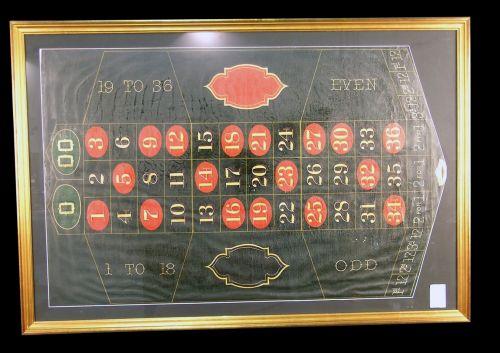 Framed Roulette Layout marked Mason Denver c.1900 line gold lead pin- -striping 34"x 50" gambling