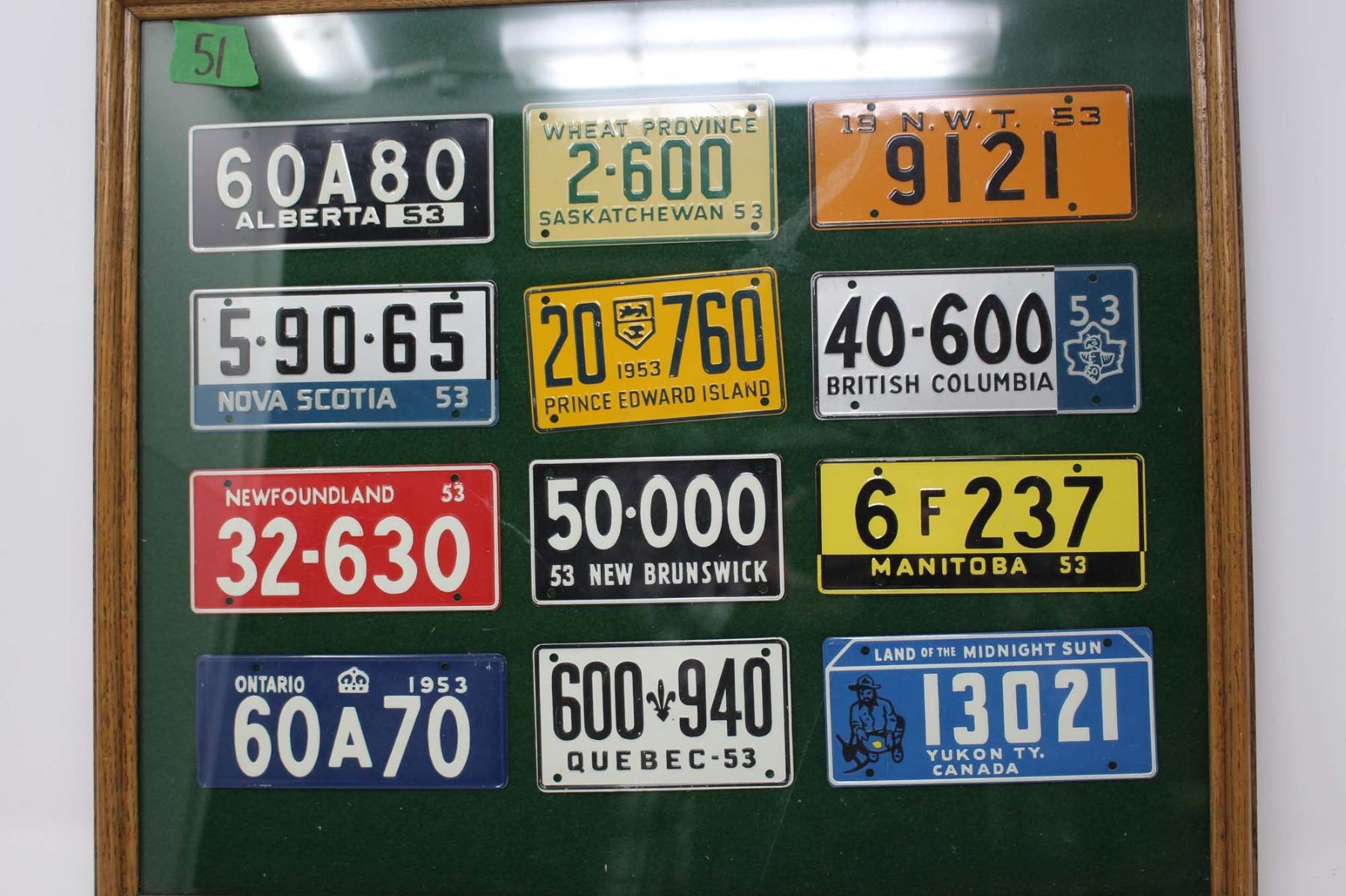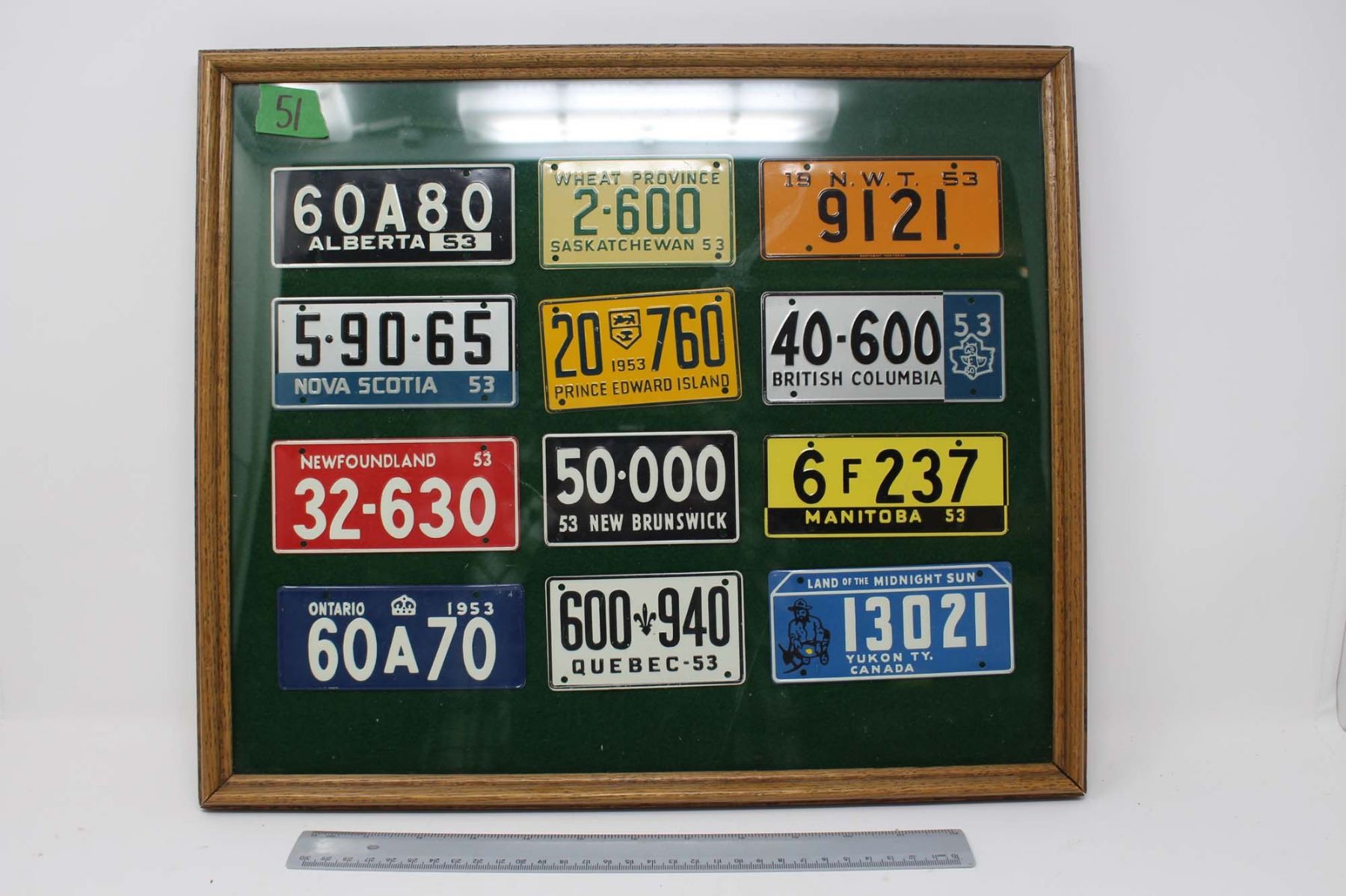 Framed Set of (12) 1953 Wheaties Cereal License Plates