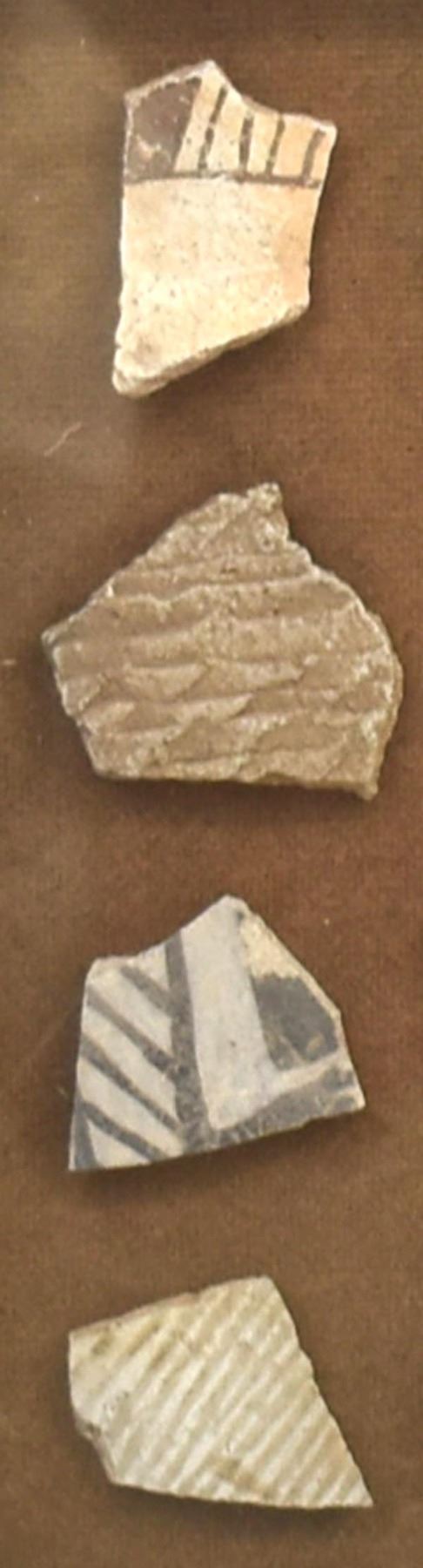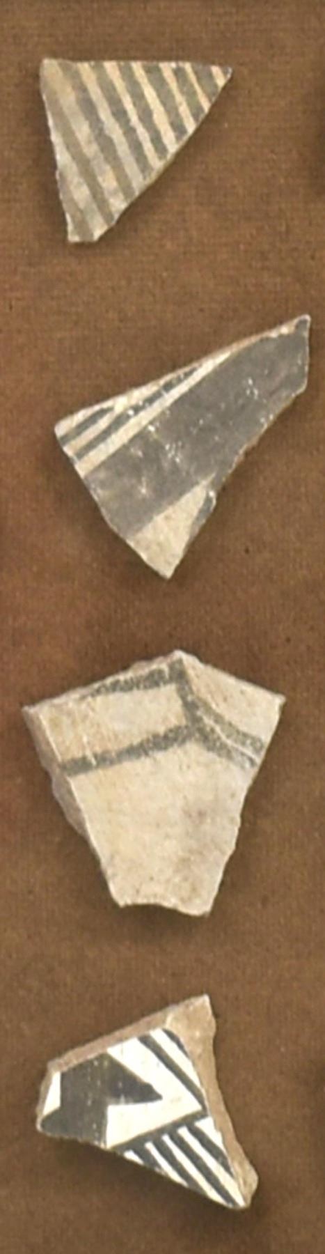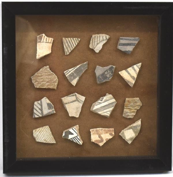Framed Shadowbox of Prehistoric Pottery Sherds measures 9" x 9"