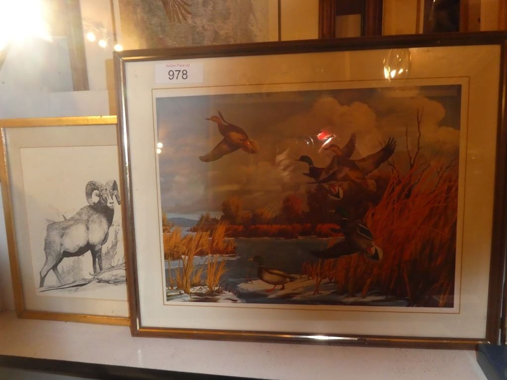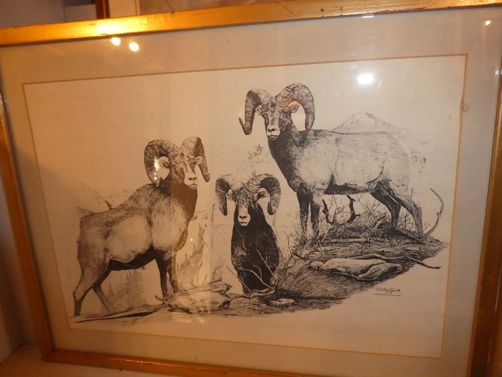 Framed, Signed Big Horned Sheep Print by D.Nod Smith