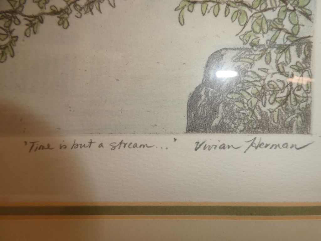 3/10 Time is but a stream BC Artist Vivian Herman Lives in Calgary Now. A serigraph is an original silk-screen color print, also known as a relief print, created by blocking ink on a screen and printing it on paper 1. The word “serigraph” comes from the Latin word “sericum” meaning silk and the Greek word “graphein” meaning to write or draw 1.
