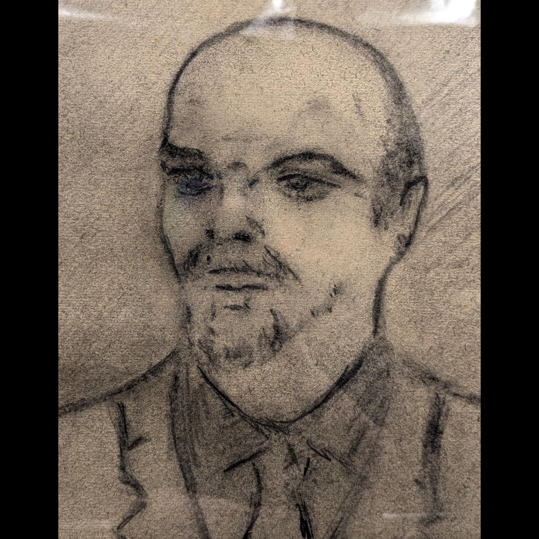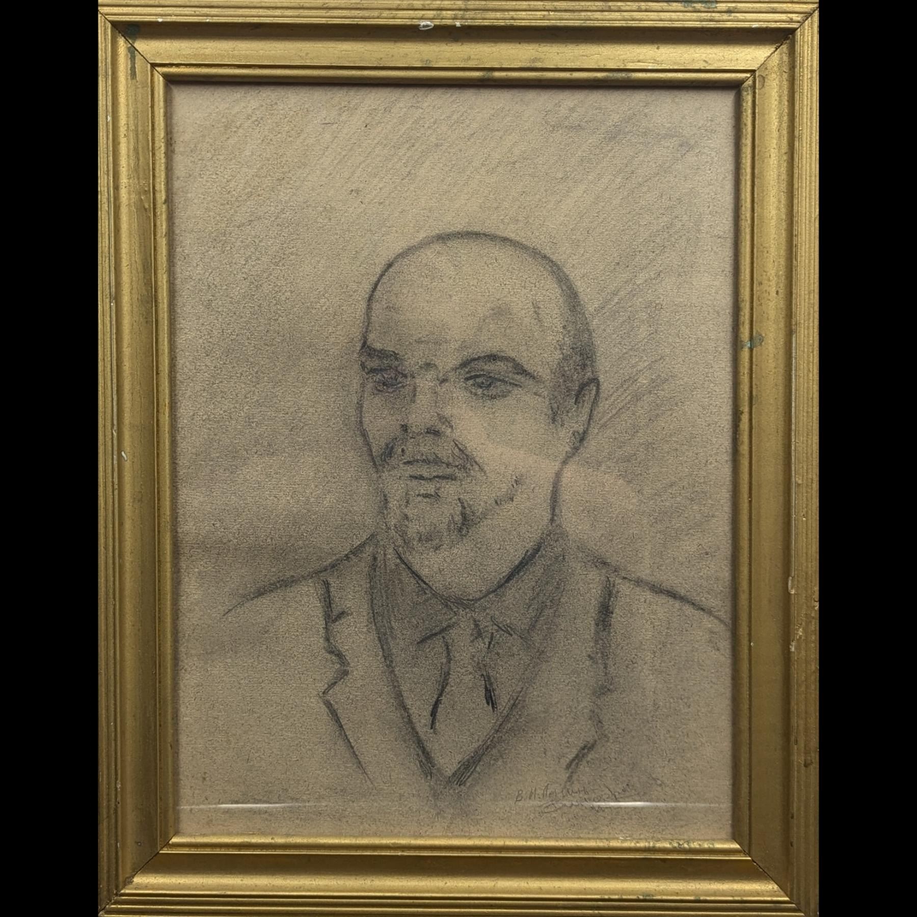 Framed Signed Pencil Sketch Of Vladimir Lenin, Early-Mid 20th Century