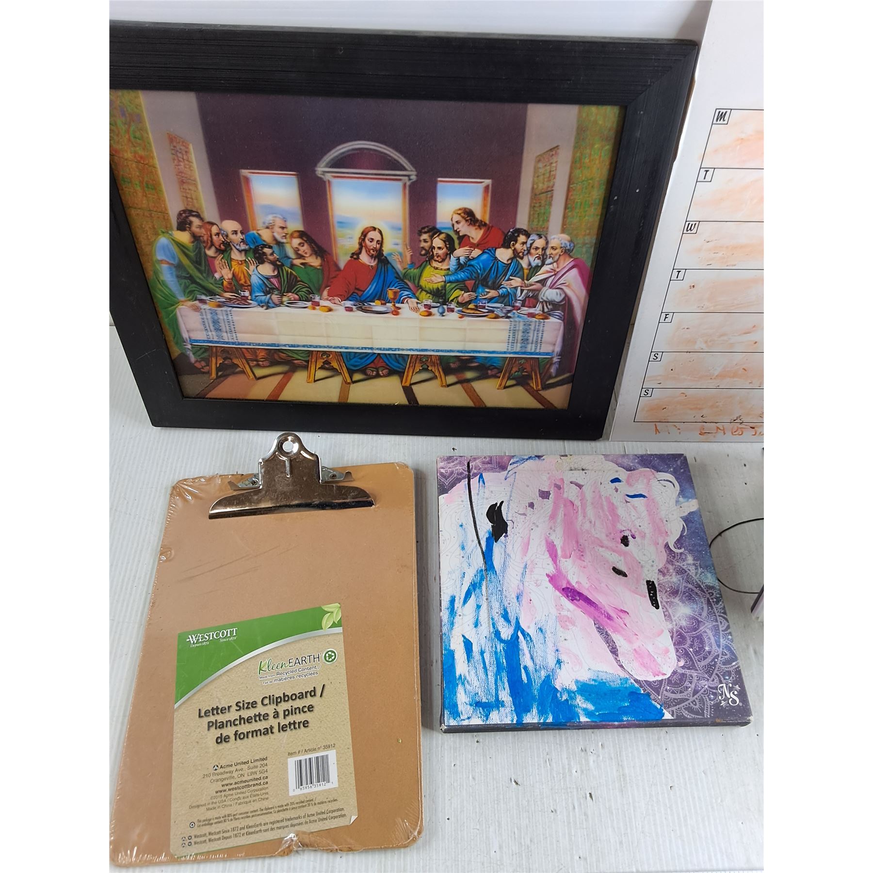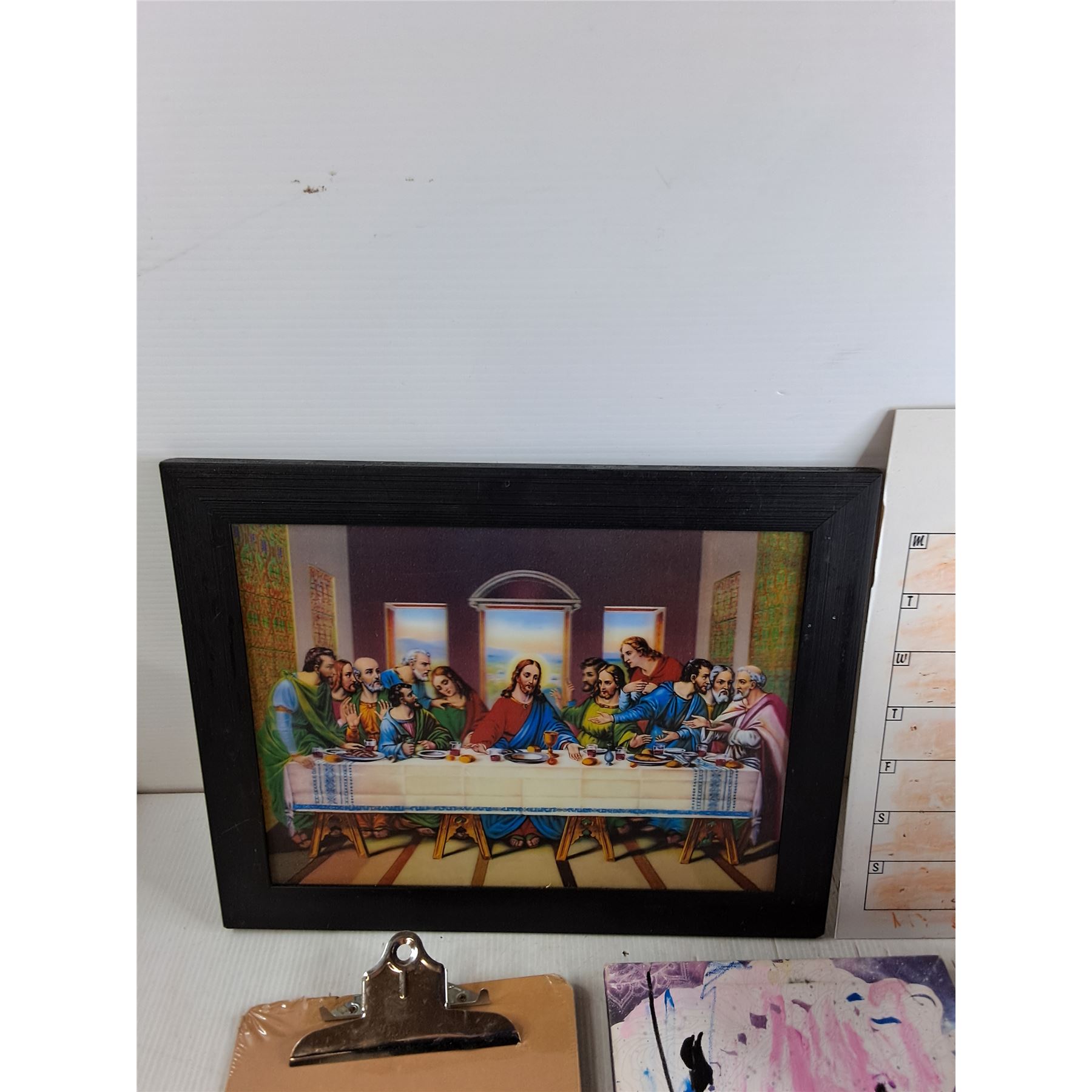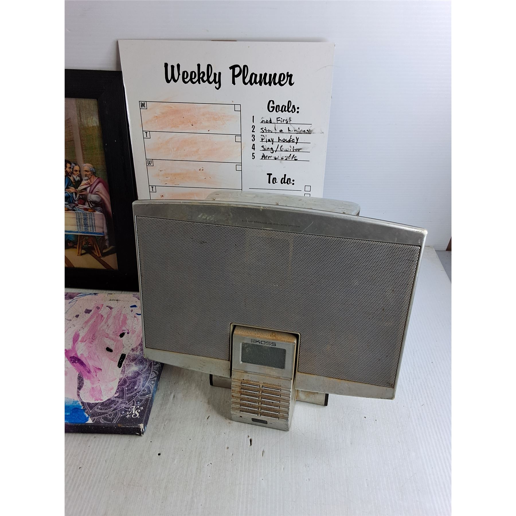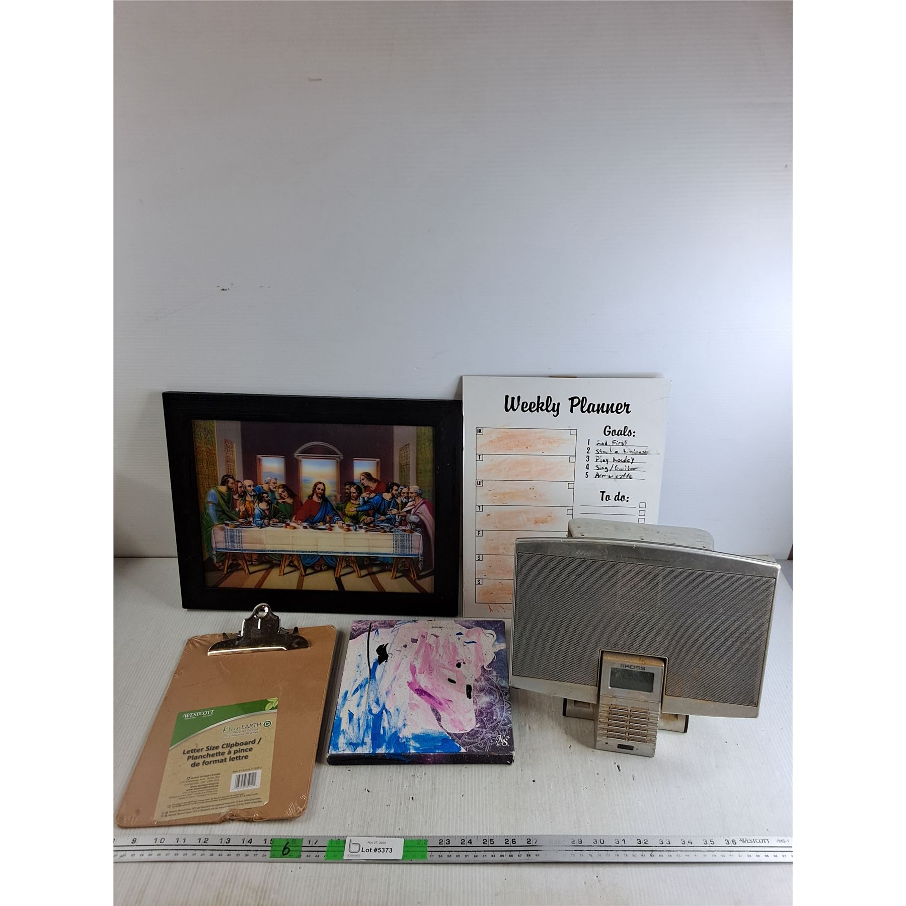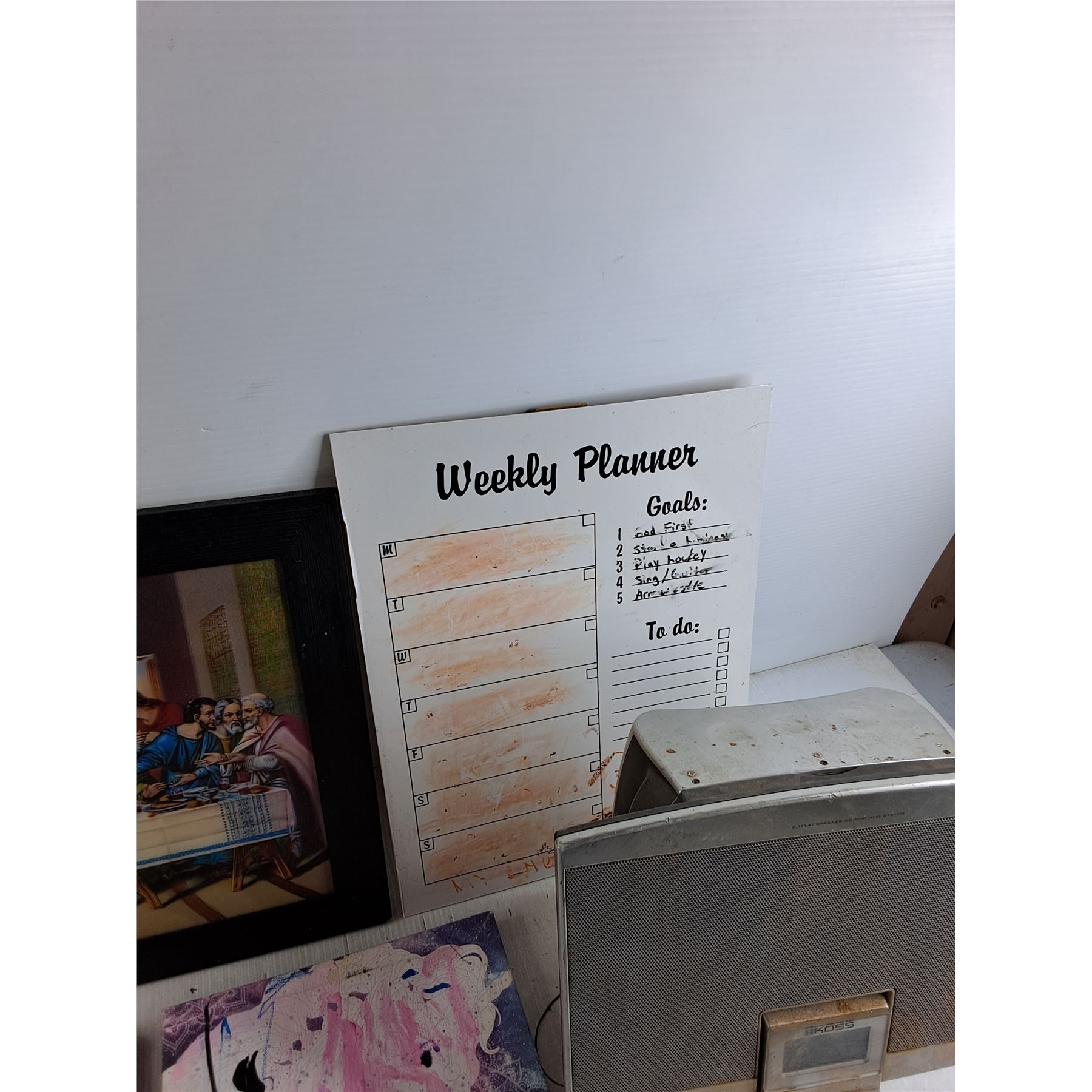 Framed The Last Supper Wall Art 17" x 14", Weekly Planer Board, Clipboard, Koss Mini HiFi System