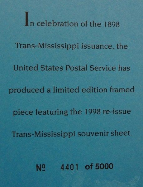 Framed Trans-Mississippi Souvenir Sheet, June 18, 1998, Anaheim, CA