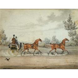 Framed Victorian coloured print of trooting, 35cm x 27cm