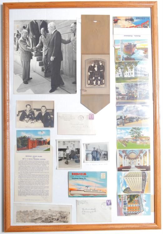 Framed WWII Collage Photos Postcards Letters PicturesFrame Measures 25.5" x 37.5".