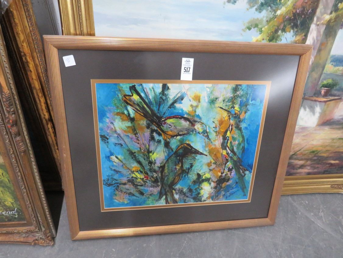 Framed Wall Art Hummingbirds - Signed Archeddecon - 24 X 30