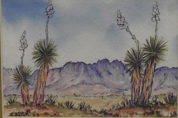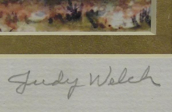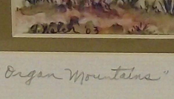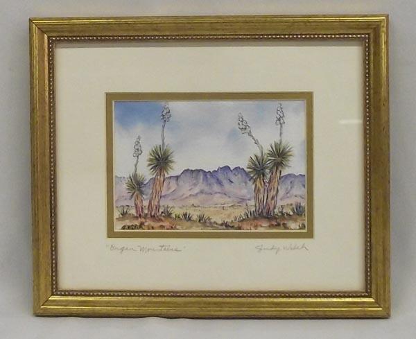 Framed Watercolor Painting Signed Judy Welch. Titled, ''Organ Mountains'' and signed in pencil on mat by artist. Framed in gold tone wood frame, matted and under glass. Visual measures 6''x4''. Buyers Pay Actual Shipping and Handling Charges(see terms and conditions for more information).