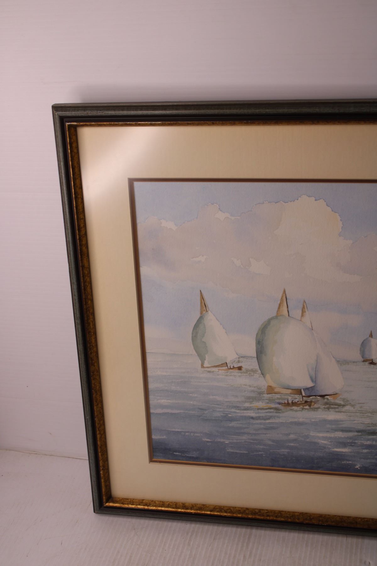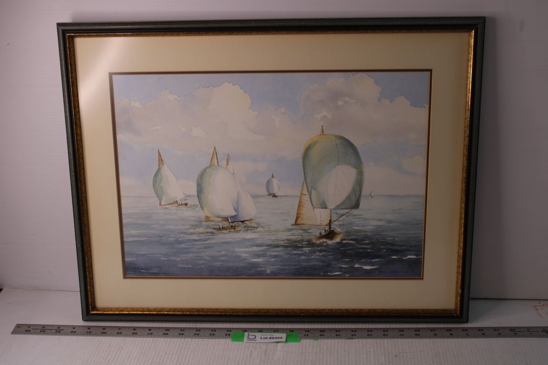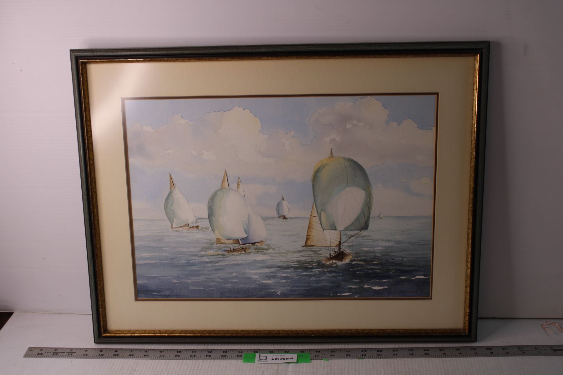 Framed Watercolour of Ocean Scene and Boats - 19" x 25"
