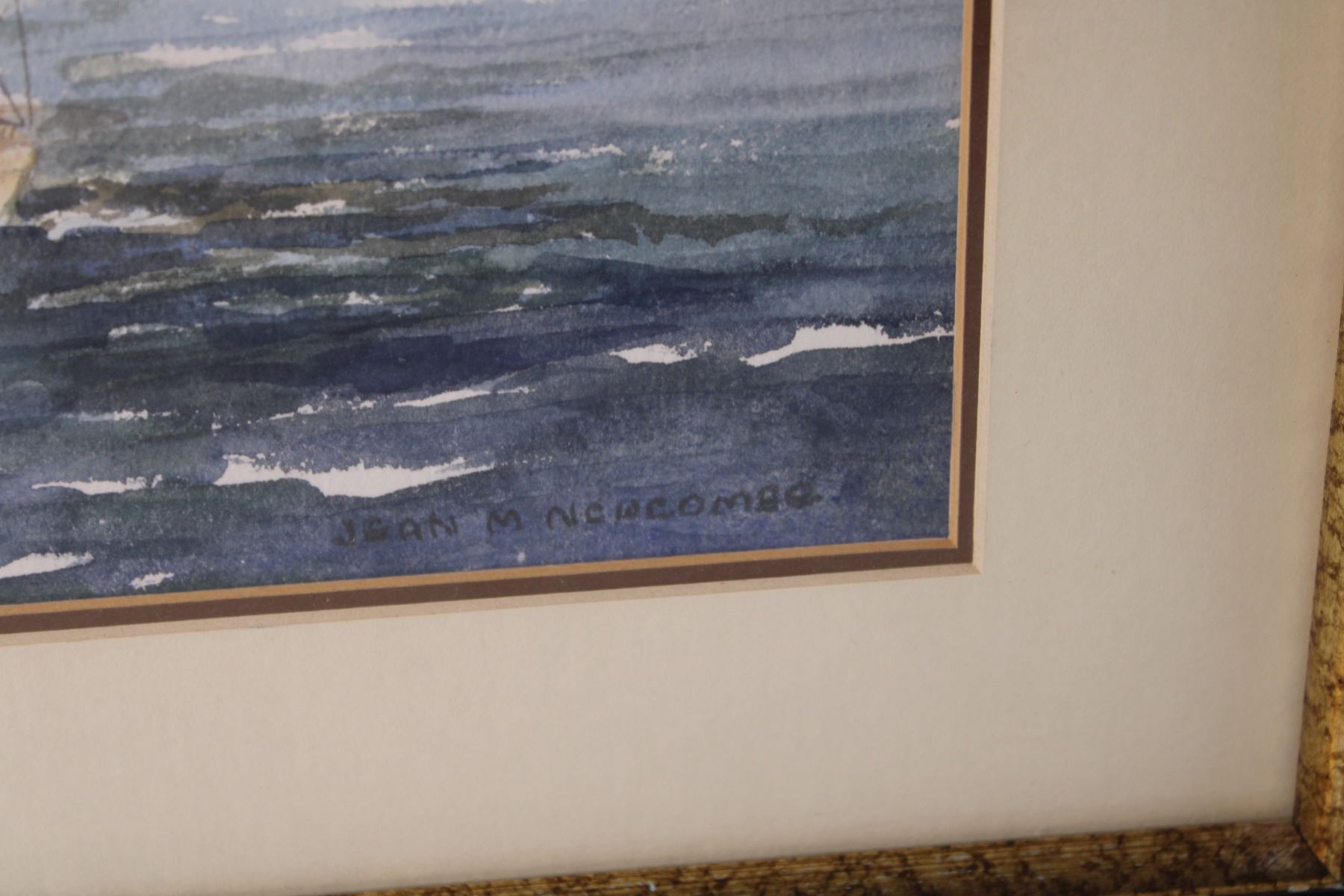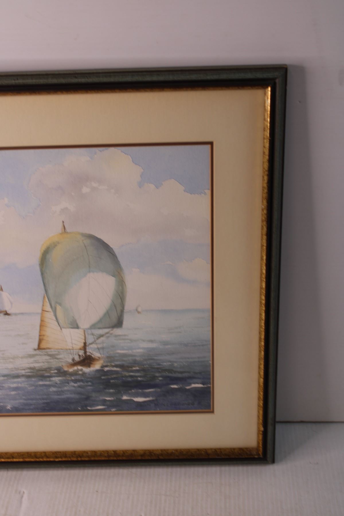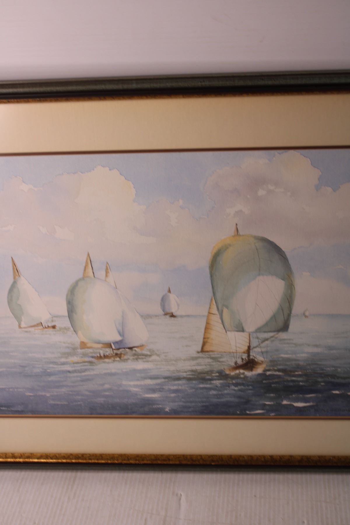 Framed Watercolour of Ocean Scene and Boats - 19" x 25"