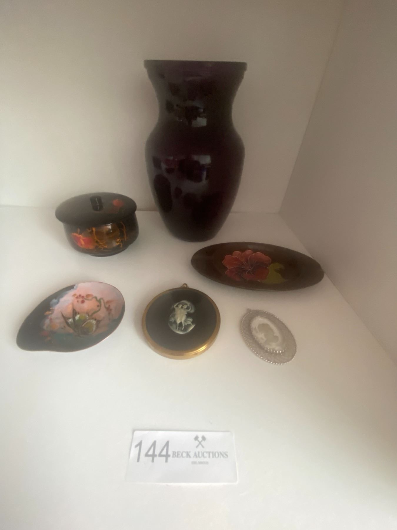 Framed Wax Miniature Portrait Locket, Antique Crystal Pendant With Portrait, Seashell Jewerly Dish