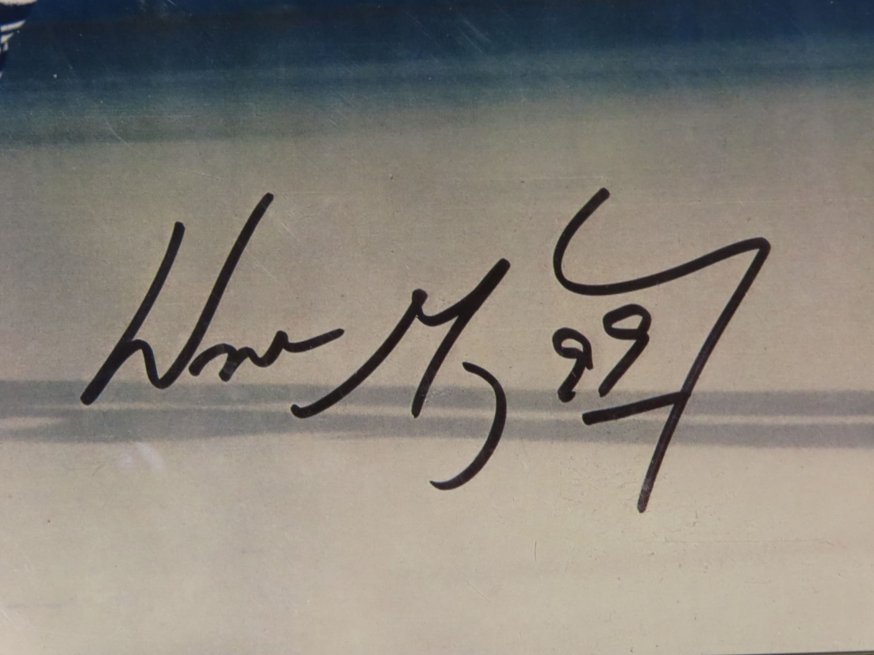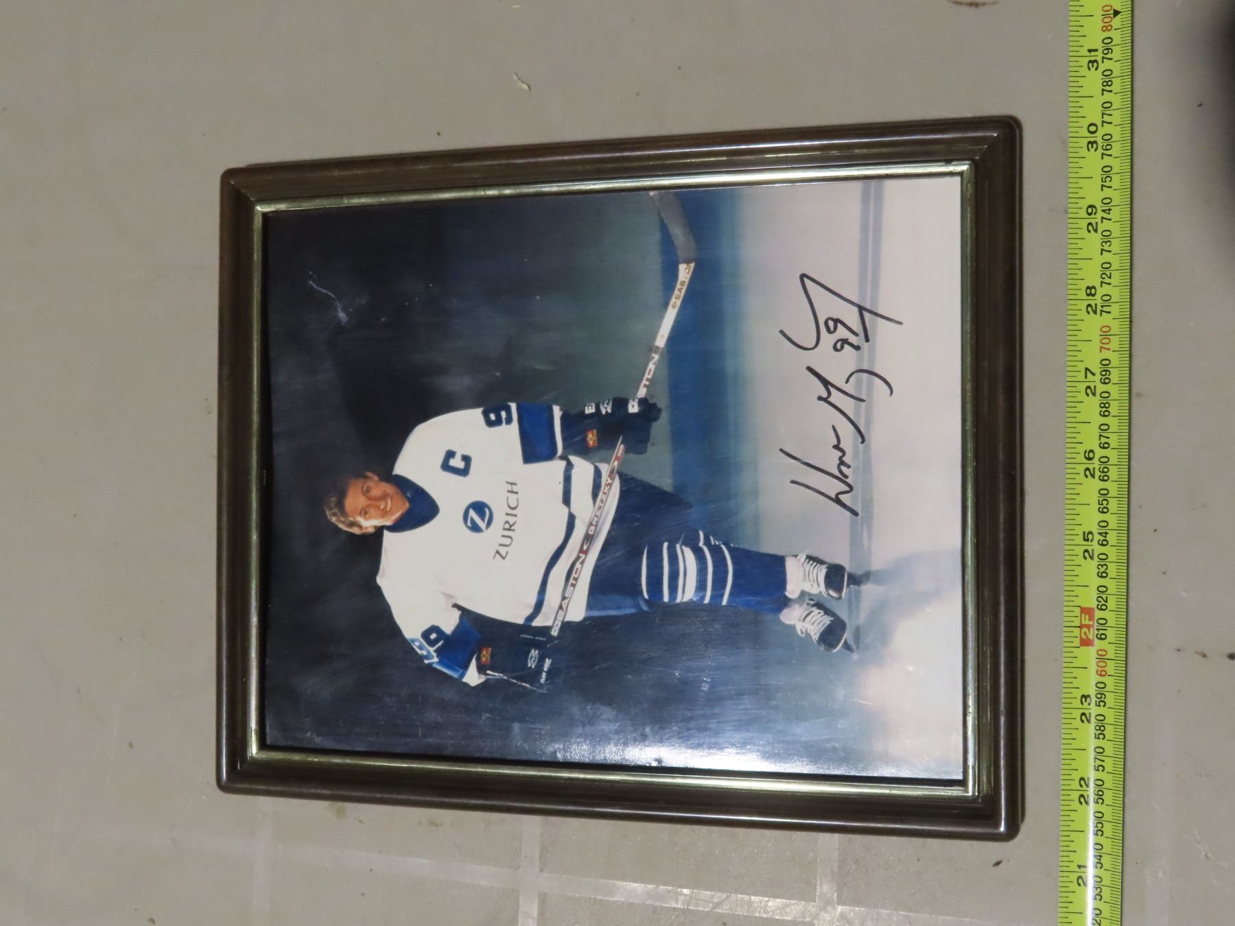 Framed Wayne Gretzky picture - 'autograph' has not been authenticated, appears to be photocopied.