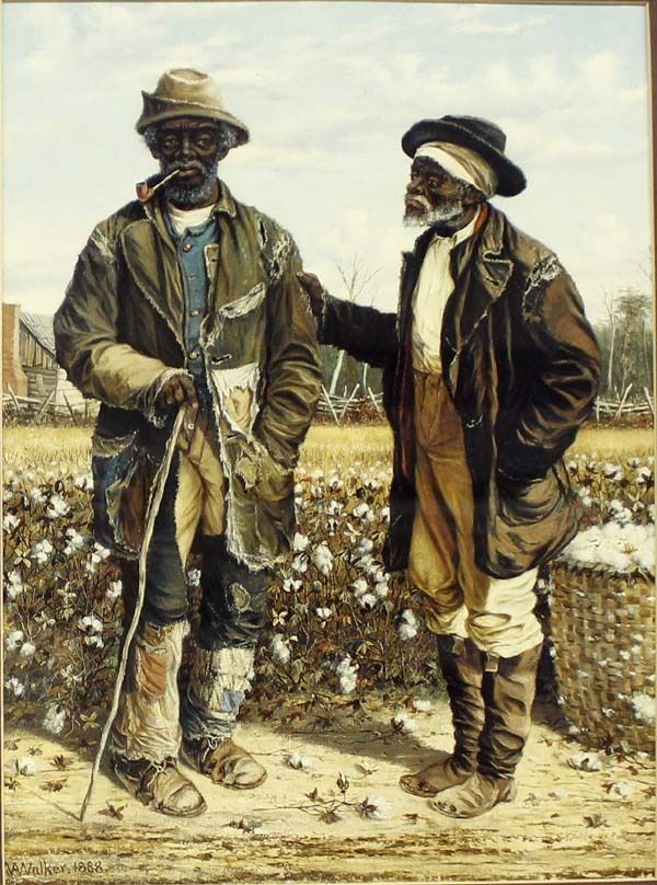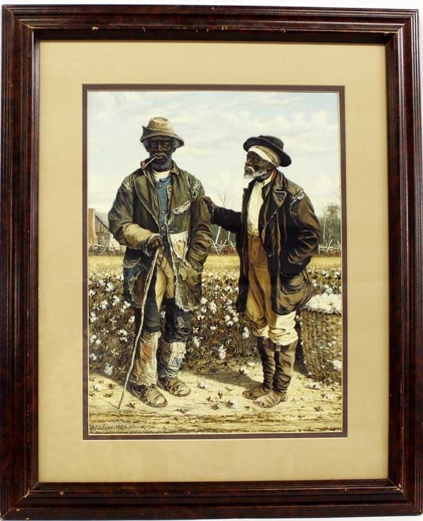 Framed William Aiken Walker ''What Do You Think'' Print, visual measures 11.5'' x 13'', double matted and under glass, FYI: ''William Aiken Walker (American, 1838-1921)'' ''William Aiken Walker (March 11, 1839 - January 3, 1921) was an American artist best known for genre paintings of black sharecroppers.''