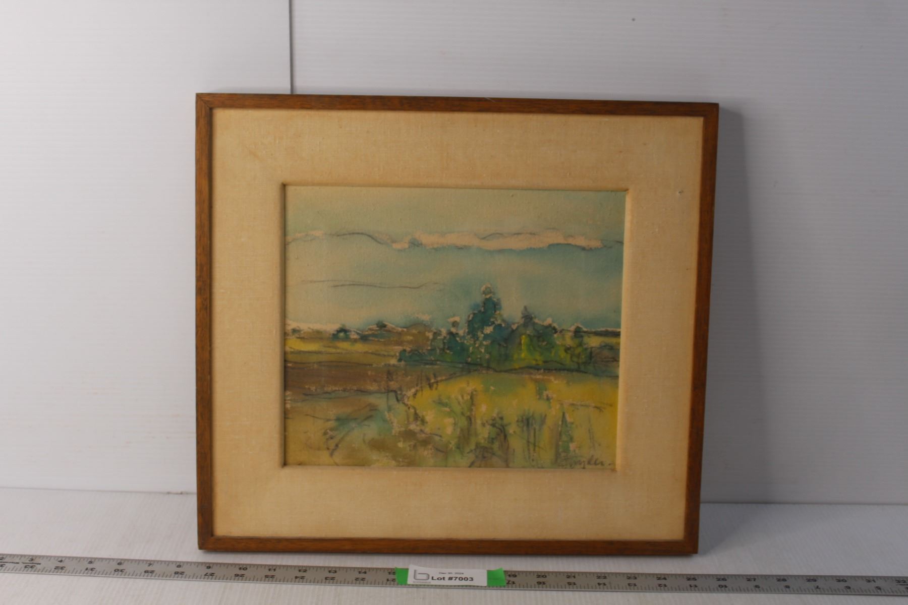 Framed 'Yellow Field' Acrylic on Canvas Artwork by G. Snyder 17" x 15.5"