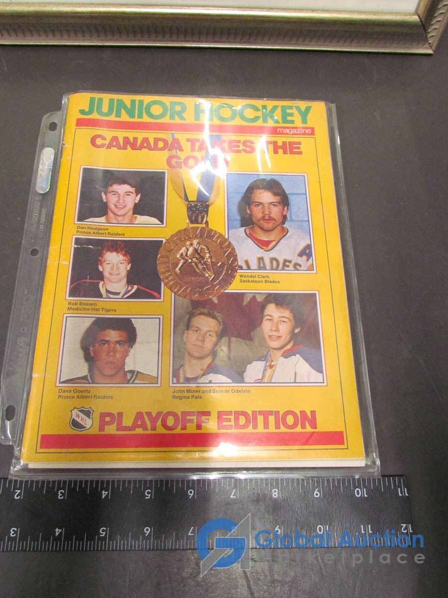 Framed and Autographed Wendel Clark "Game on" Print and WHL Magazine