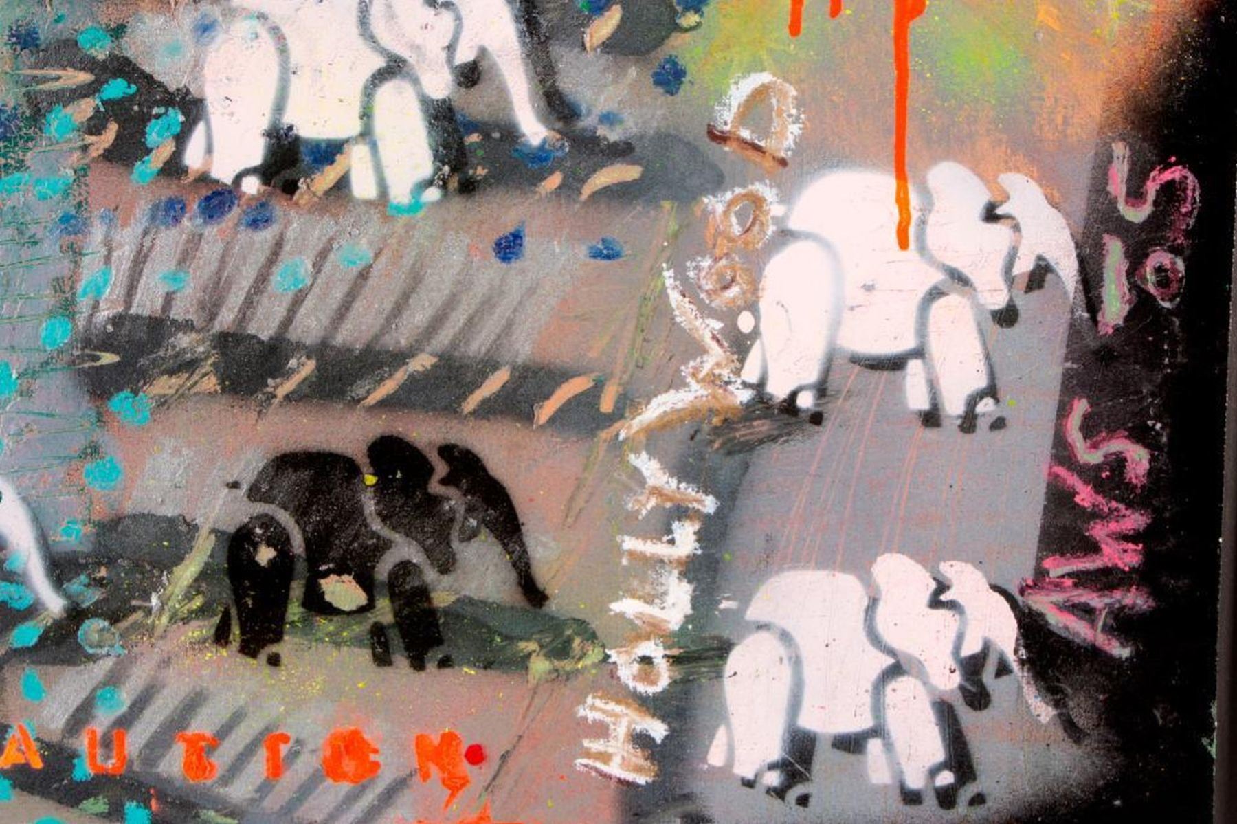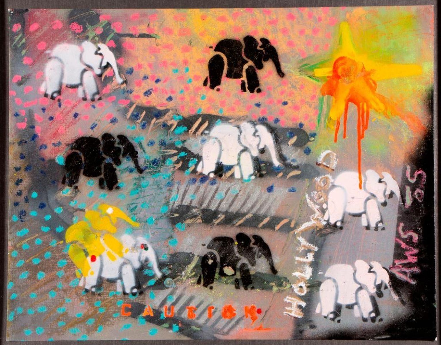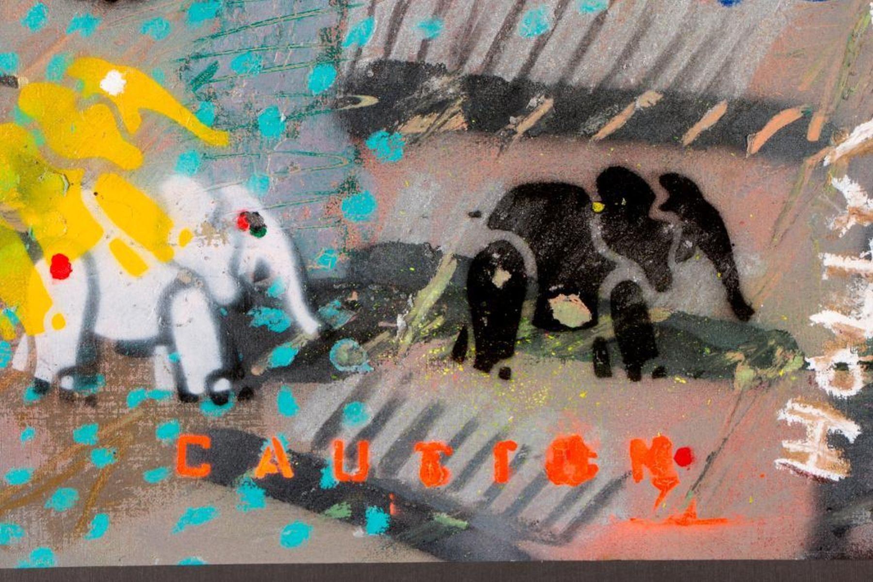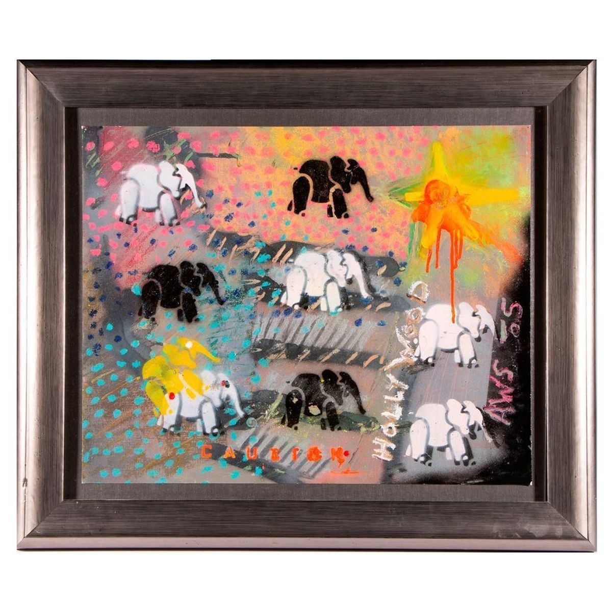Framed and decorative stencil art. Artwork: Height-16 inches; Width-20 inches. Frame: Height-22 inches; Width-26 inches.