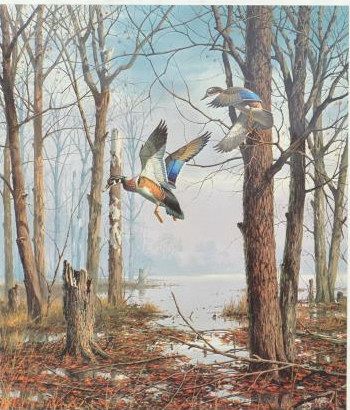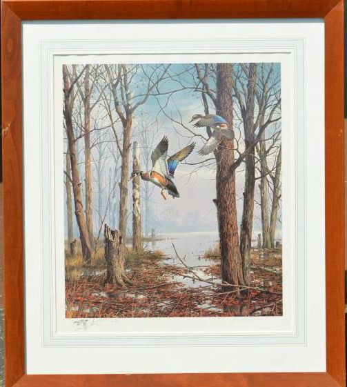 Framed and matted limited edition David Maass print (41/580), entitled “Misty Morning-Woodcock”, hand signed, approx. 31” x 27”. From the estate of Robert E. Petersen. Est.: $250-$500.