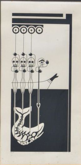 Framed and matted limited edition print entitled “Wi-Wi-Kup”; Northwest Coast style 34/50 signed Nytom, 1982, approx. 22” x 11”; some slight acid burning. Est.: $100-$300.