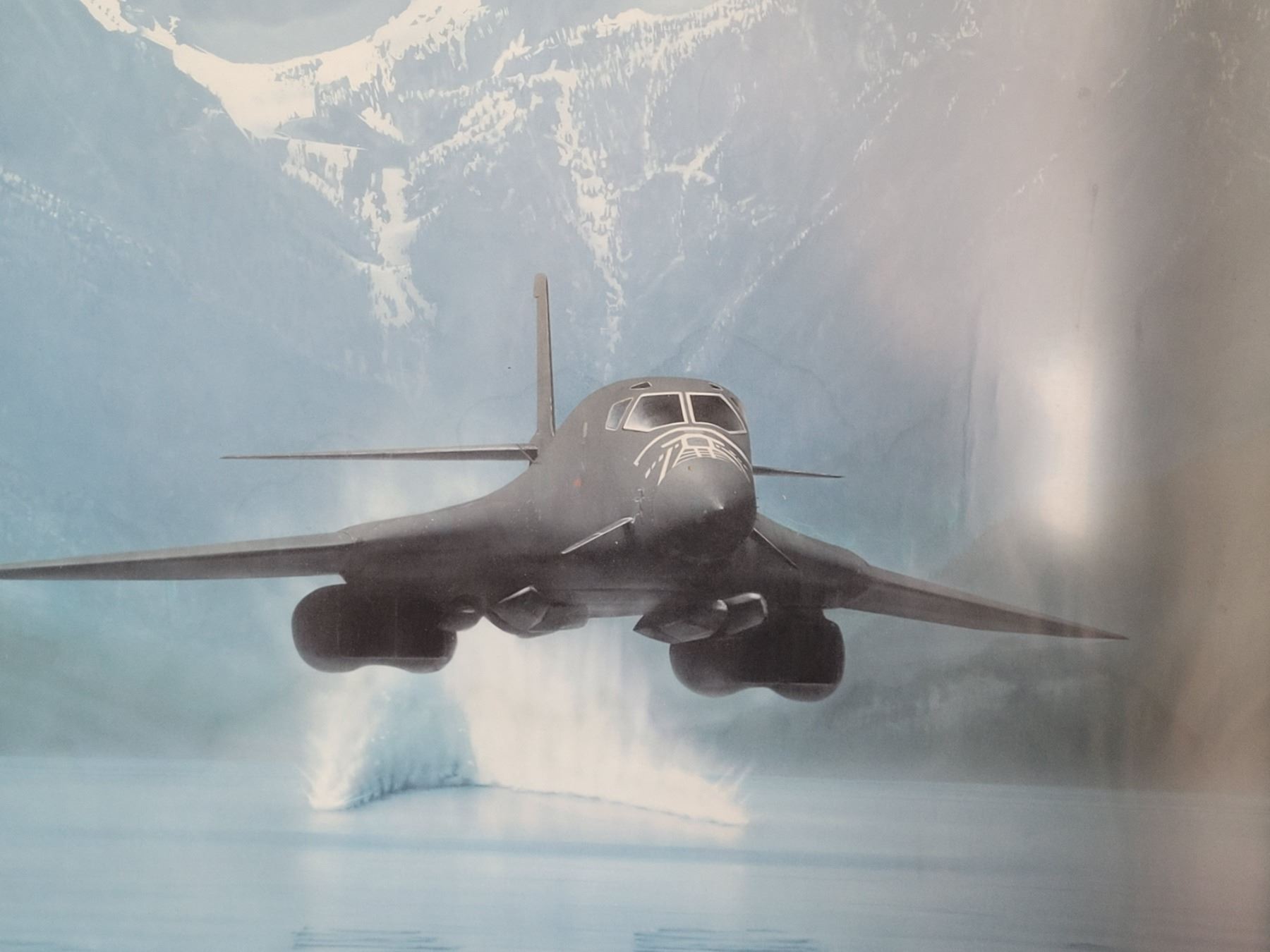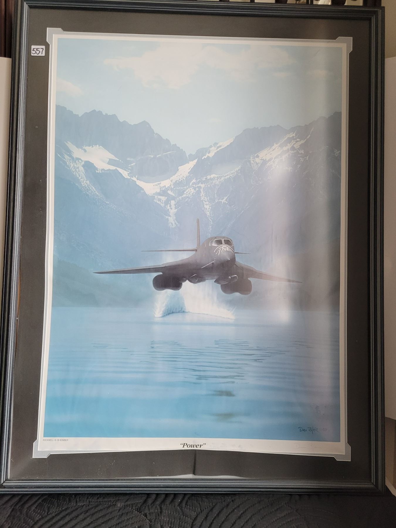 Framed and signed print by Dru Blair. Rockwell B-18 Bomber. 37”H X 28 1/2”W