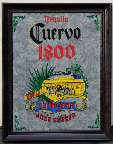 Framed bar advertising mirror for Cuervo 1800 approx. 20” x 16” in very good condition. Est.: $50-$75.