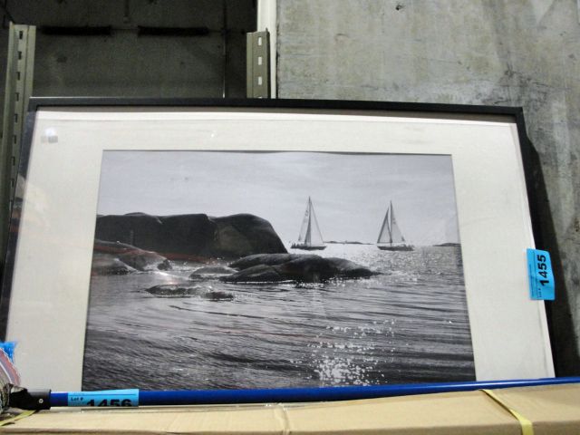 Framed black and white sailing print