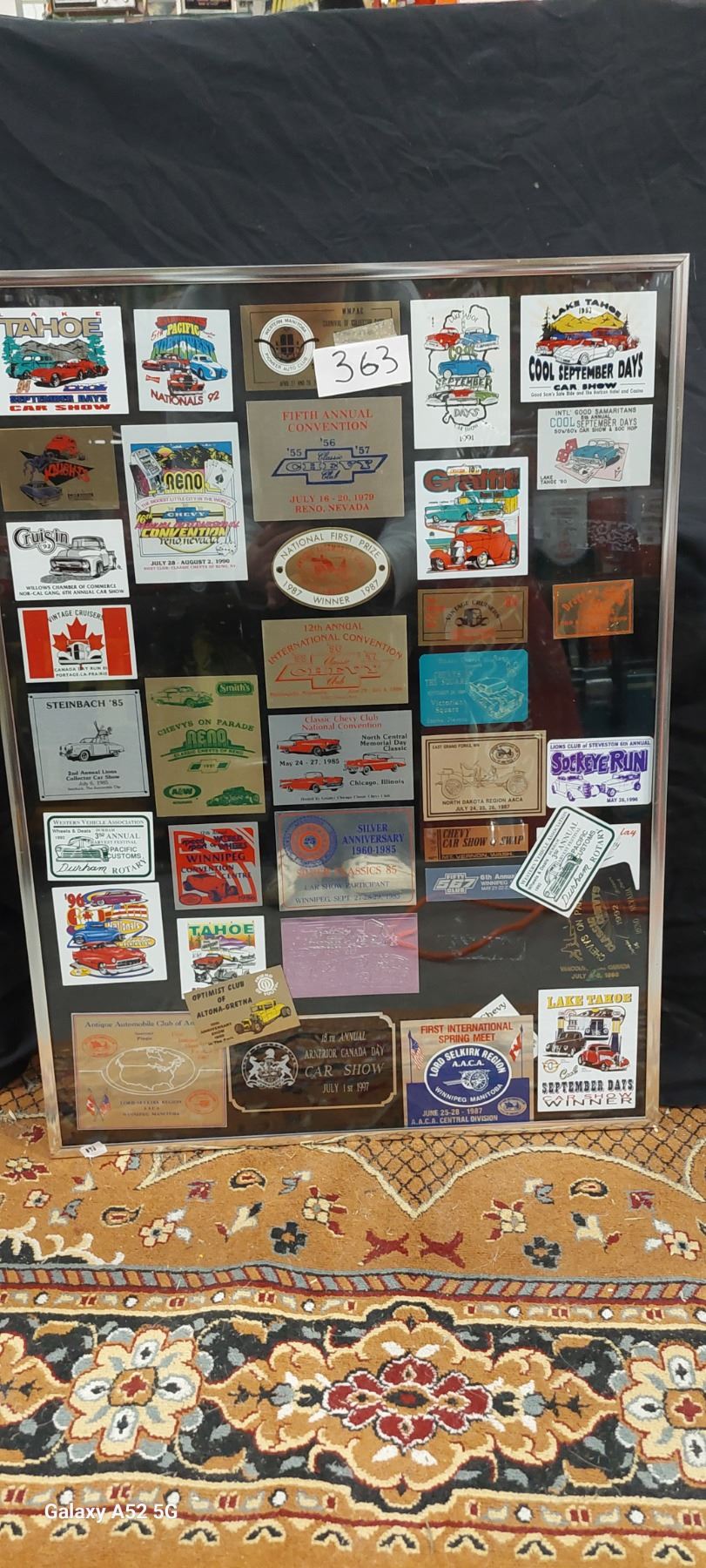 Framed collection of Metal car show dash packs 18"x24"