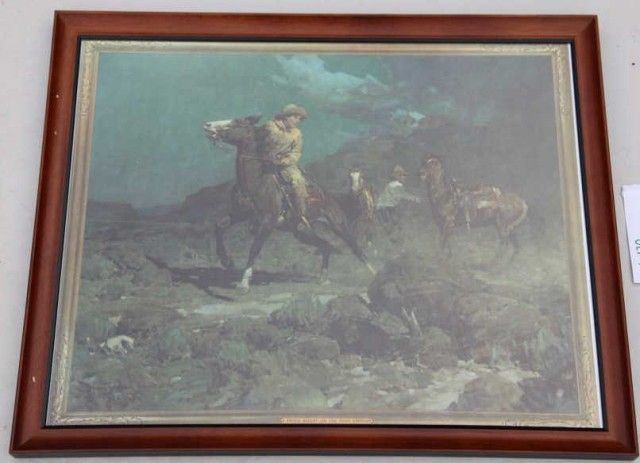 Framed color print of “A Fresh Mount on the  Pony Express” by famed Western artist Frank  Tenney Johnson approx. 16” x 20” image size:  from the Frank Tenney Johnson estate.  Est.:   $150-$250.