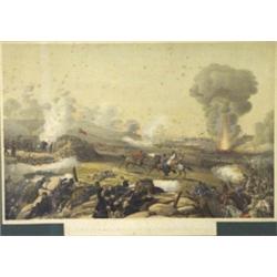 Framed coloured print a Sortie from Sebastopol taken from the Four Malta Battery London Published 1854 by Lloyd Bros Ludgate Hill, 36cm x 55cm