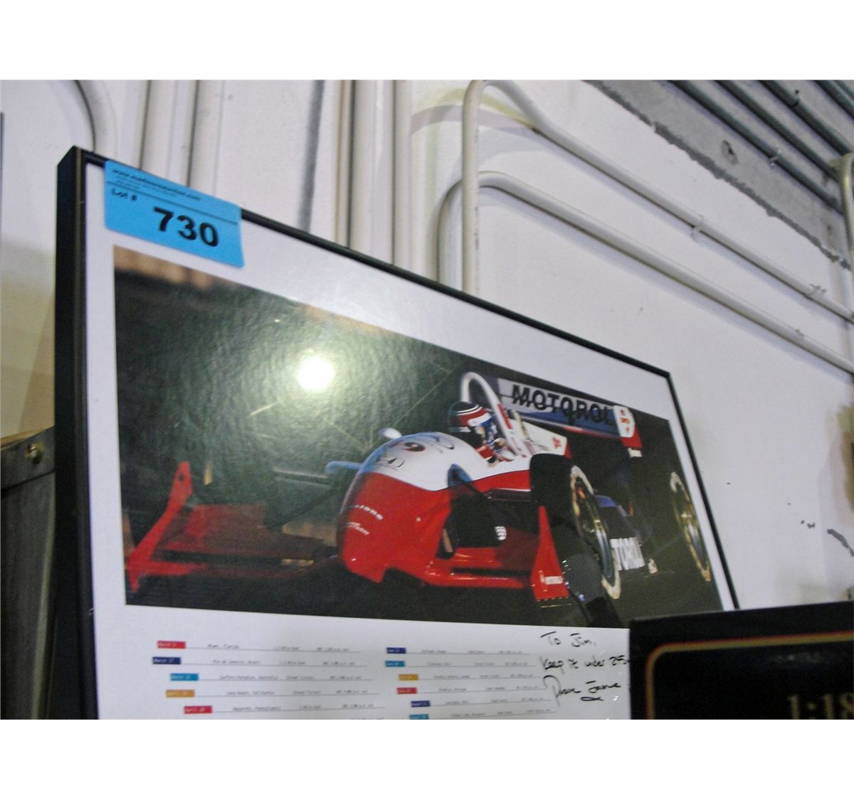 Framed formula1 racing photo, signed by driver