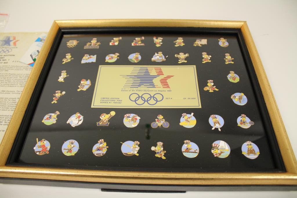 Pins of the Los Angeles 1984 Olympics (#29998/30000), in Olympics shipping cardboard box with Certificate. Also, one additional pin included from the 2006 Winter Olympic games. Est.: $100-$200