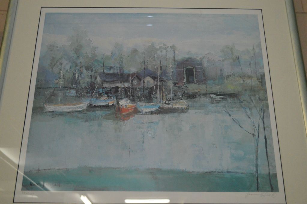 Framed limited edition print of boats in a harbour 332/750 signed by artist Jean Kalisch