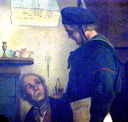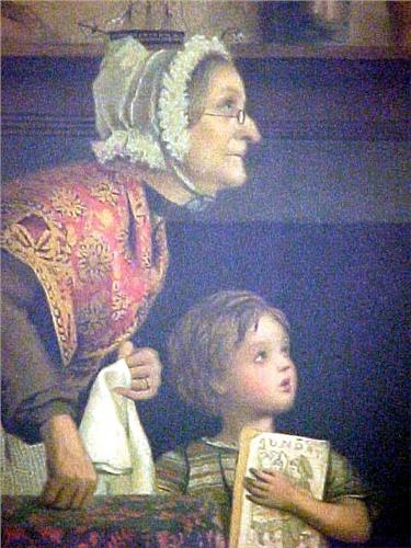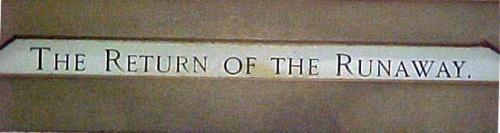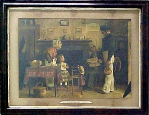 Framed lithograph "The Return of the Runaway"; image measures 16" x 23 1/2"; framed; 19th C. (slight discoloration along top of print)