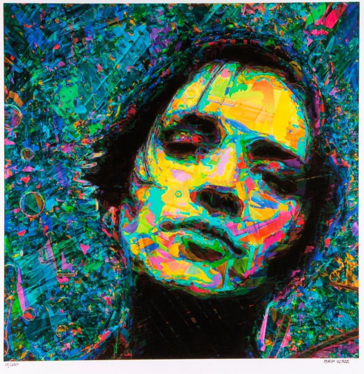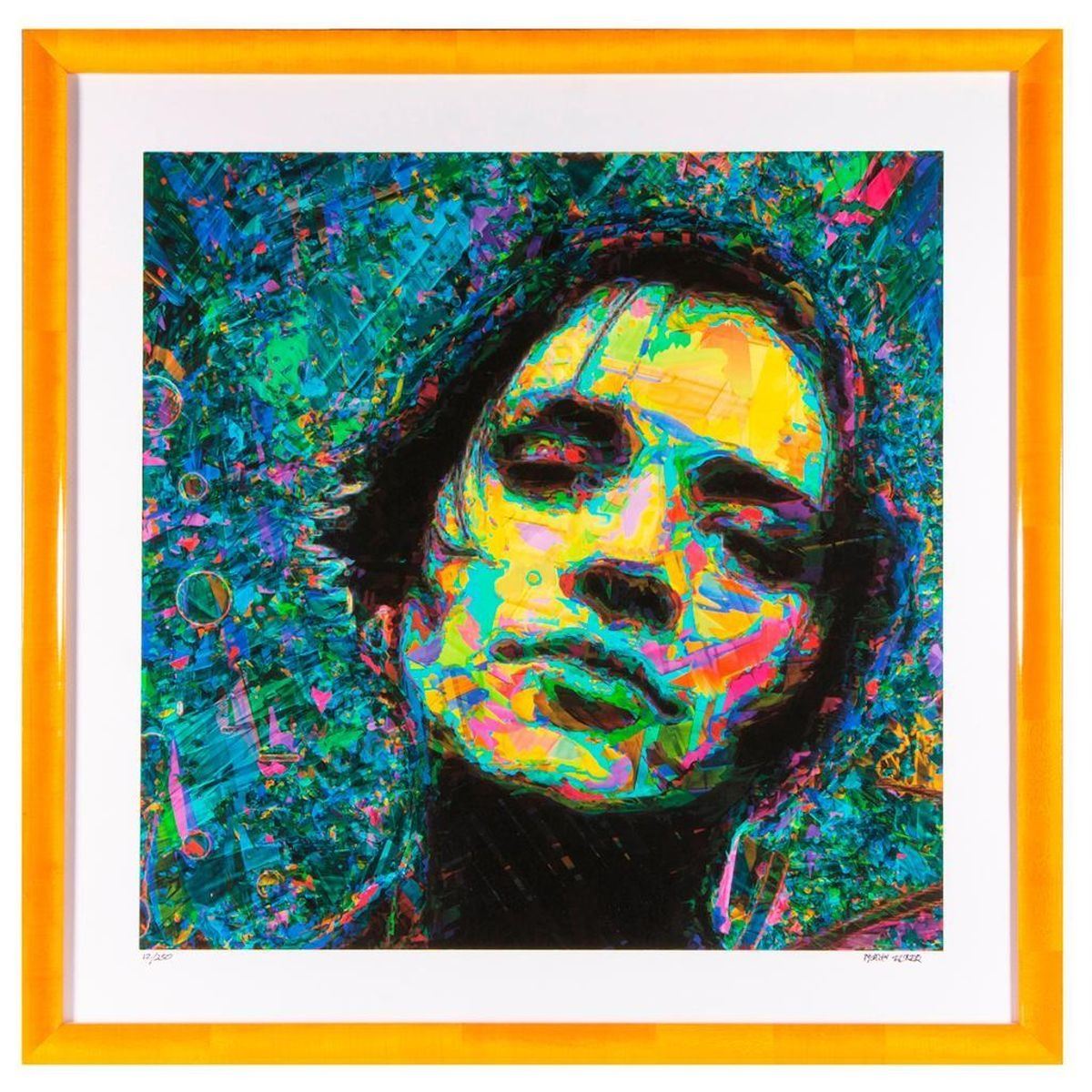 Framed multi-colored lithograph. Artwork: Height-20 inches; Width-20 inches. Frame: Height-26 inches; Width-26 inches.