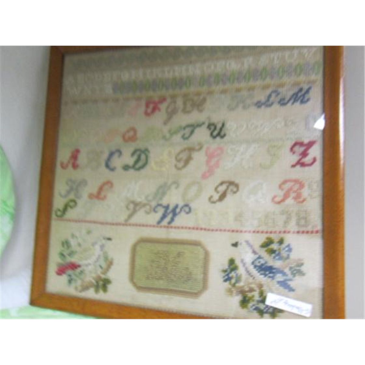Framed needle point ABC's - 1880 with birds - capitals and script - 15"